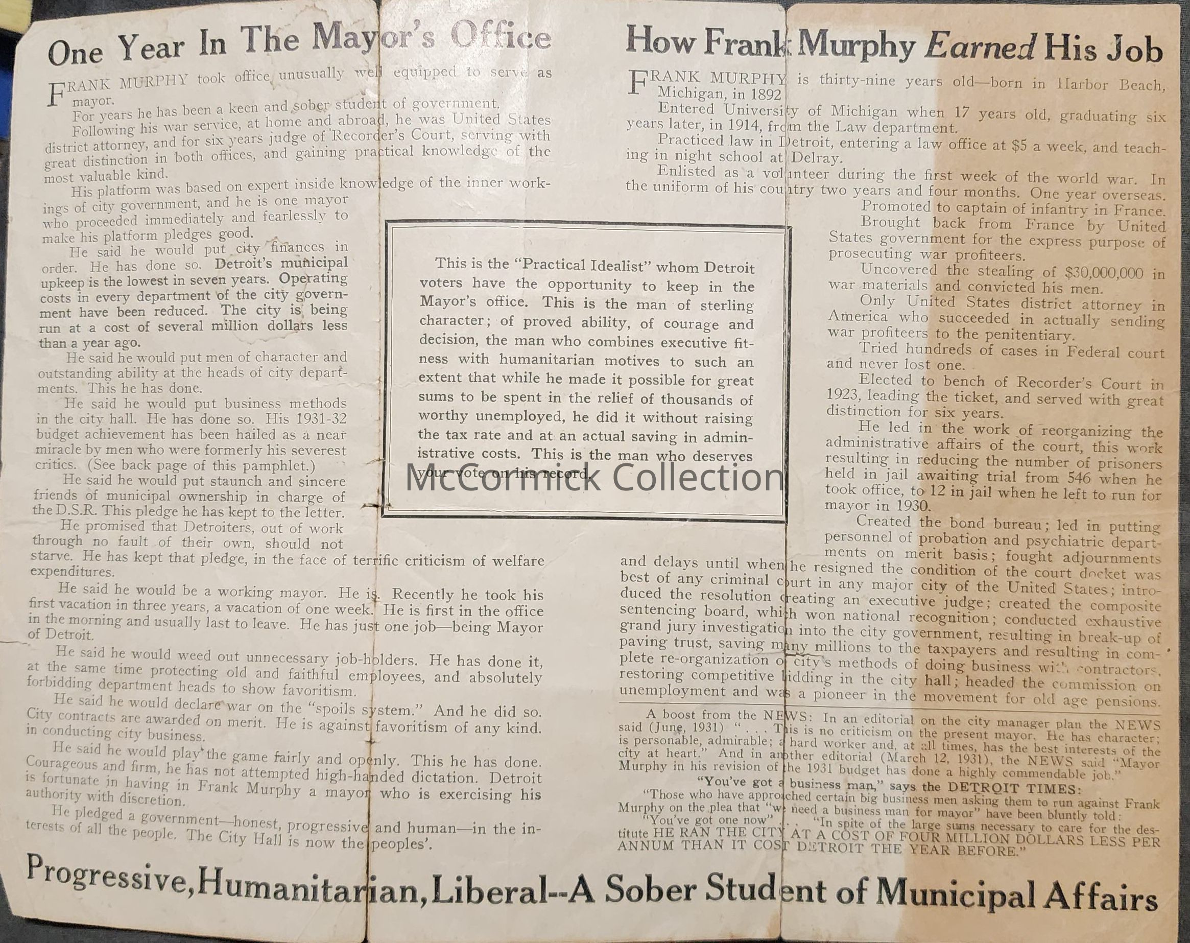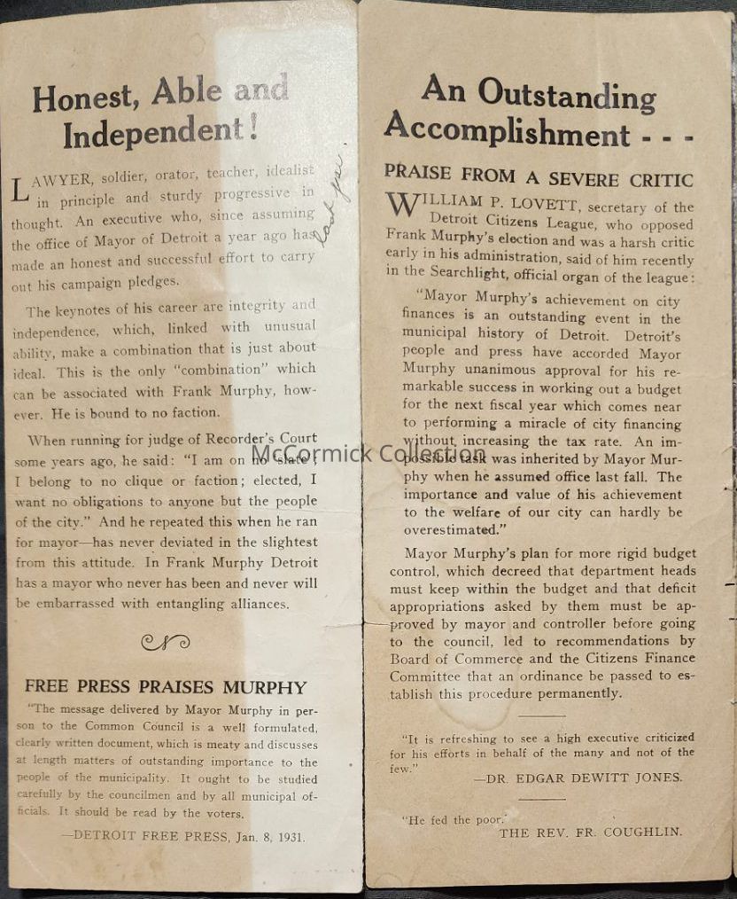 Frank Murphy: What He Has Done Pamphlet