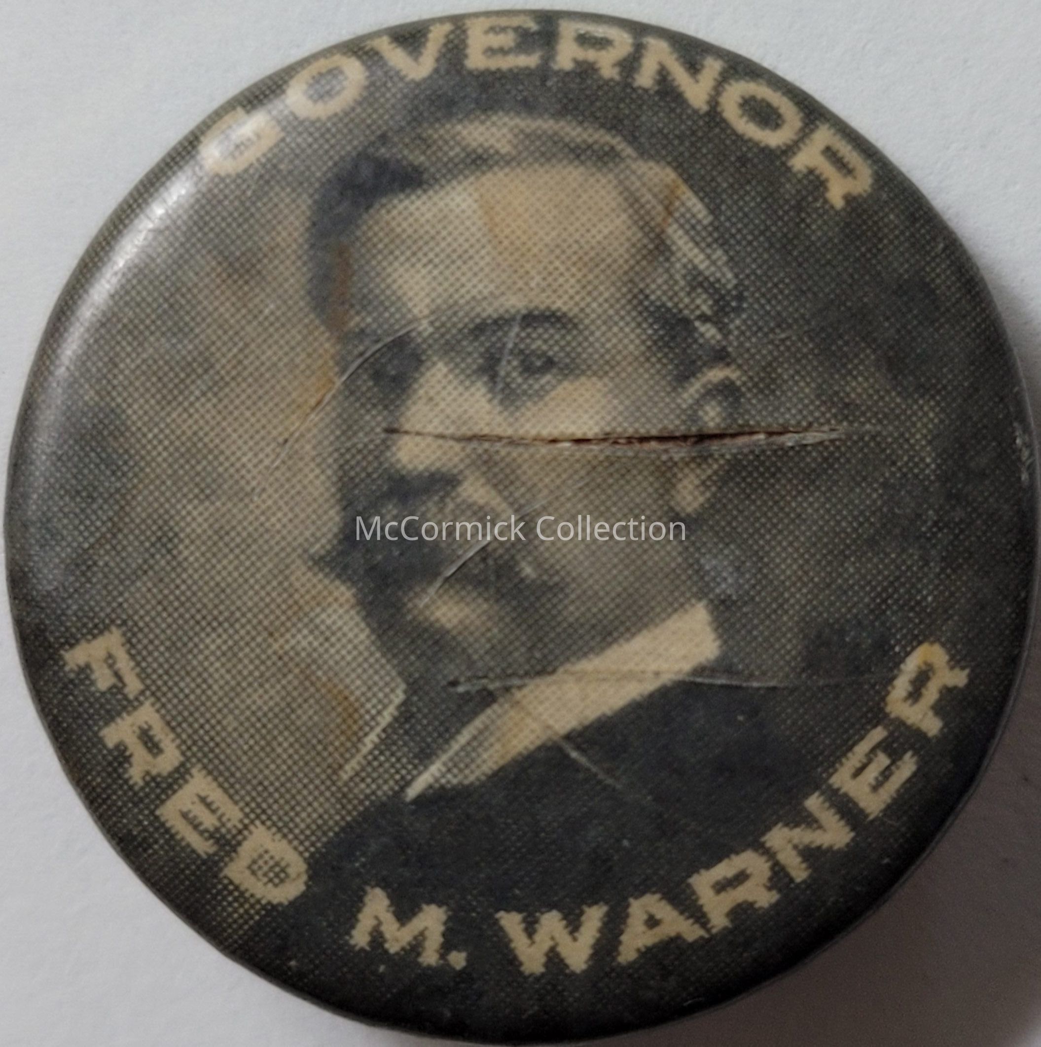 A 1" political button for Fred M. Warner of Governor, circa 1900s. Scratch into cello in face.