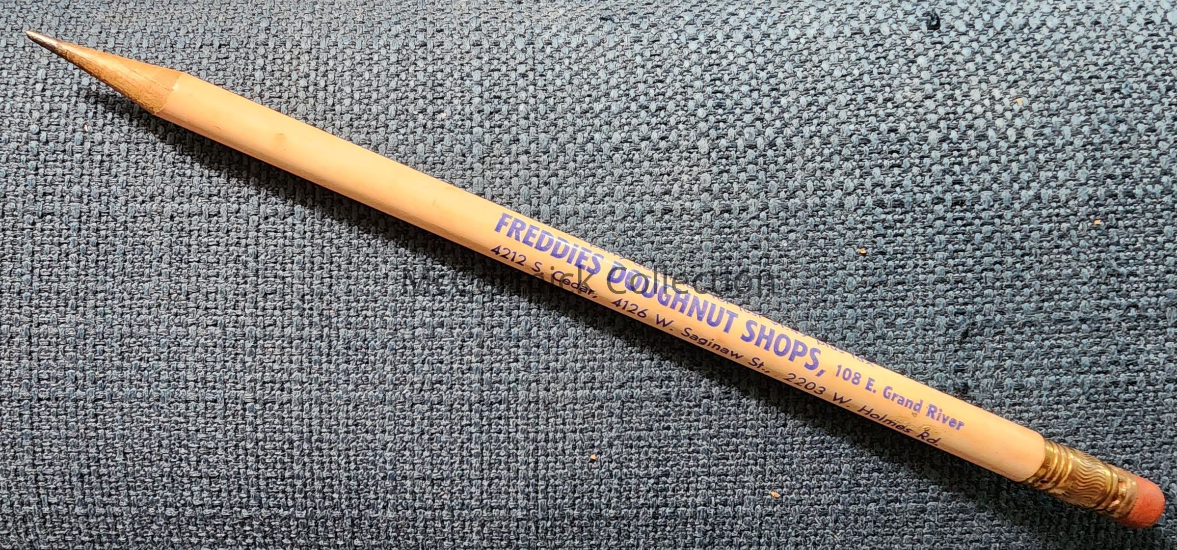 Advertising pencil for Freddies Doughnut Shop in Lansing. From Siebert Estate.