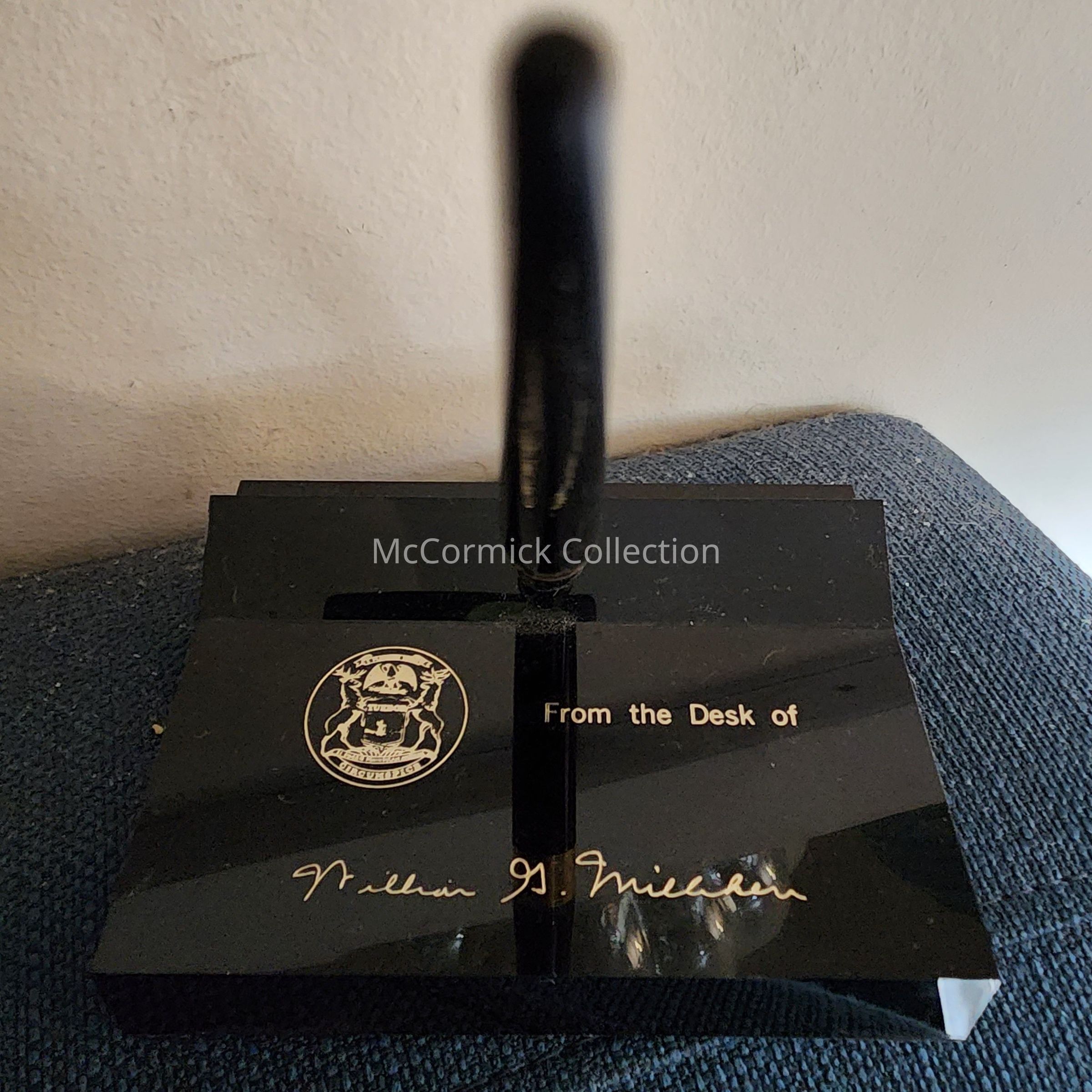 A black 1970s Sheaffer pen desk caddy from the Desk of Michigan Governor William G Milliken.