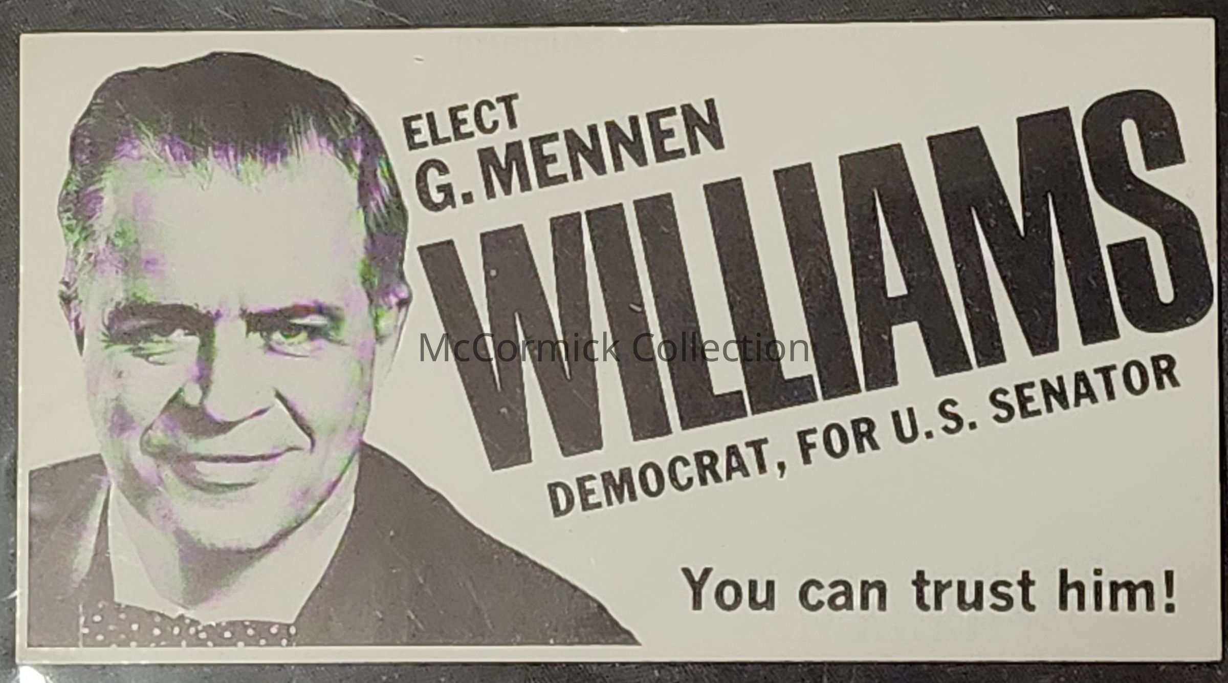 Political campaign card for G. Mennen Williams for United States Senator in 1966.