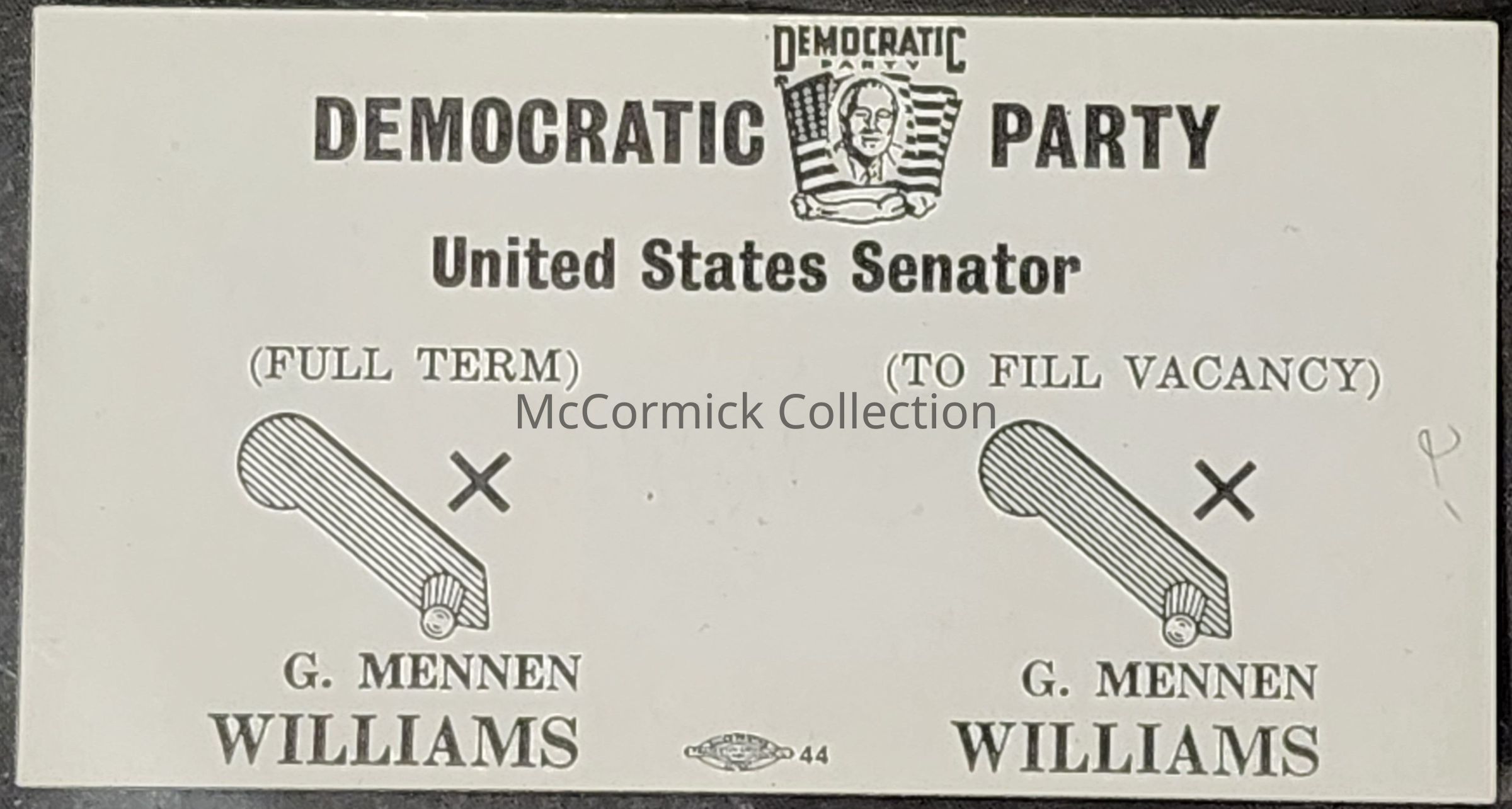G. Mennen Williams for U.S. Senate Palm Card