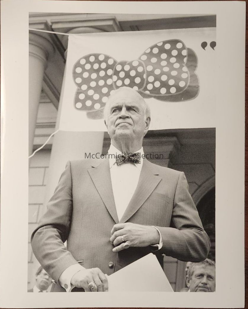 A 1986 press photograph by Alan Kamuda of Gov. G. Mennen Williams at Soapy Williams Day at the Capitol.