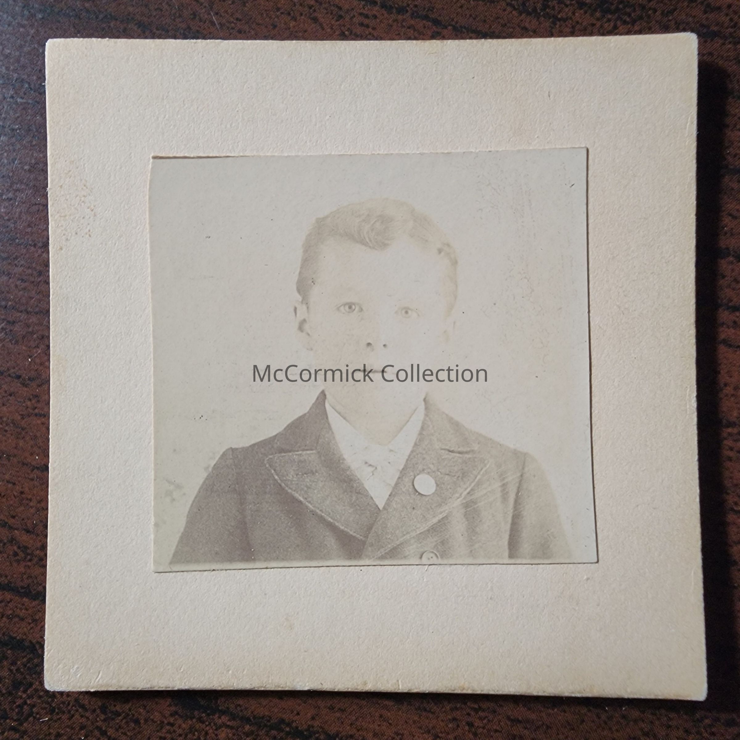 Small card mounted photograph of a Boy named Gary Fown or Town (sp), unmarked but believed to be by Penny Photograph Gallery of Lansing.