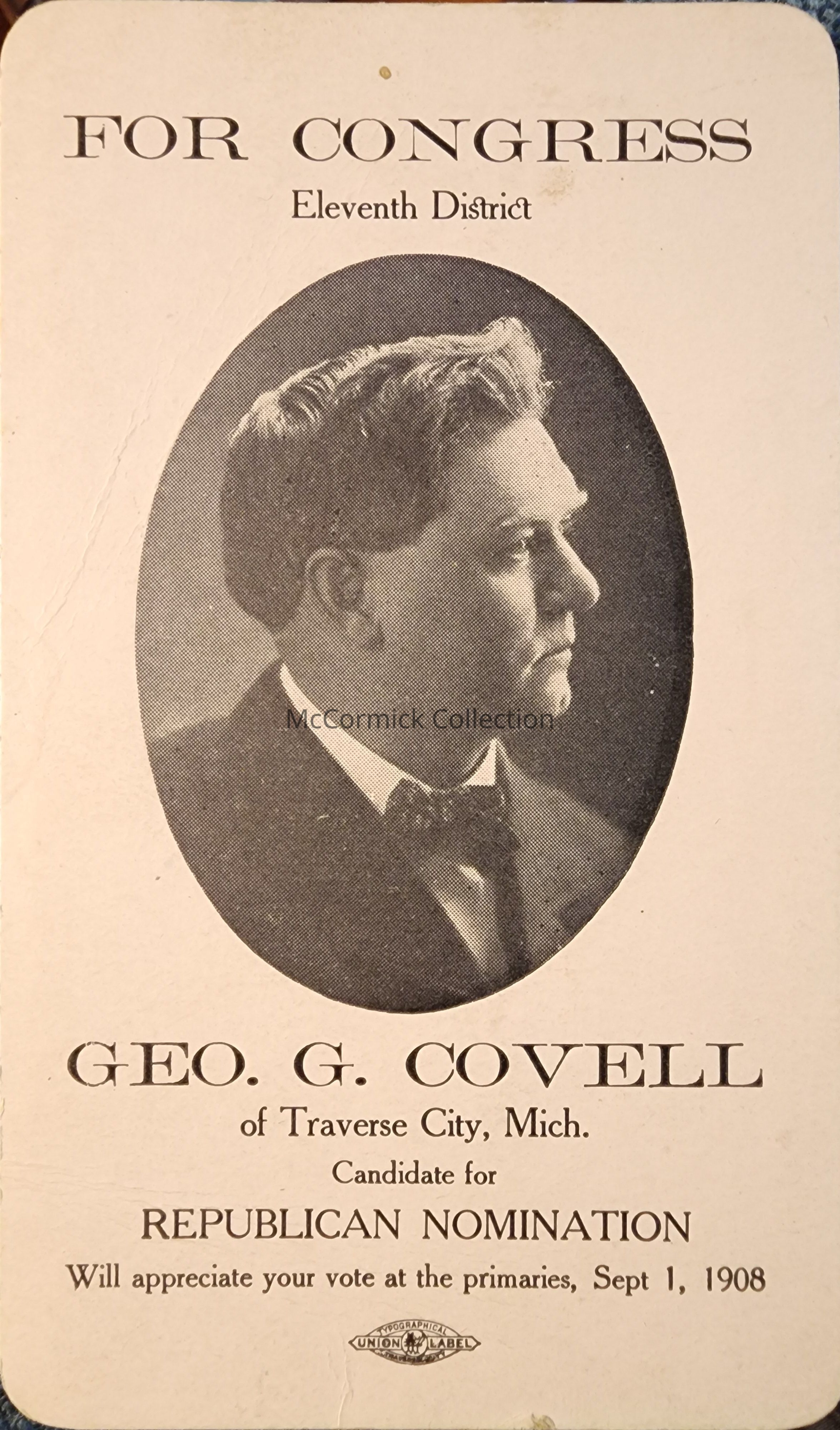 Republican candidate from Traverse City, Michigan. 1908. Eleventh Congressional District.