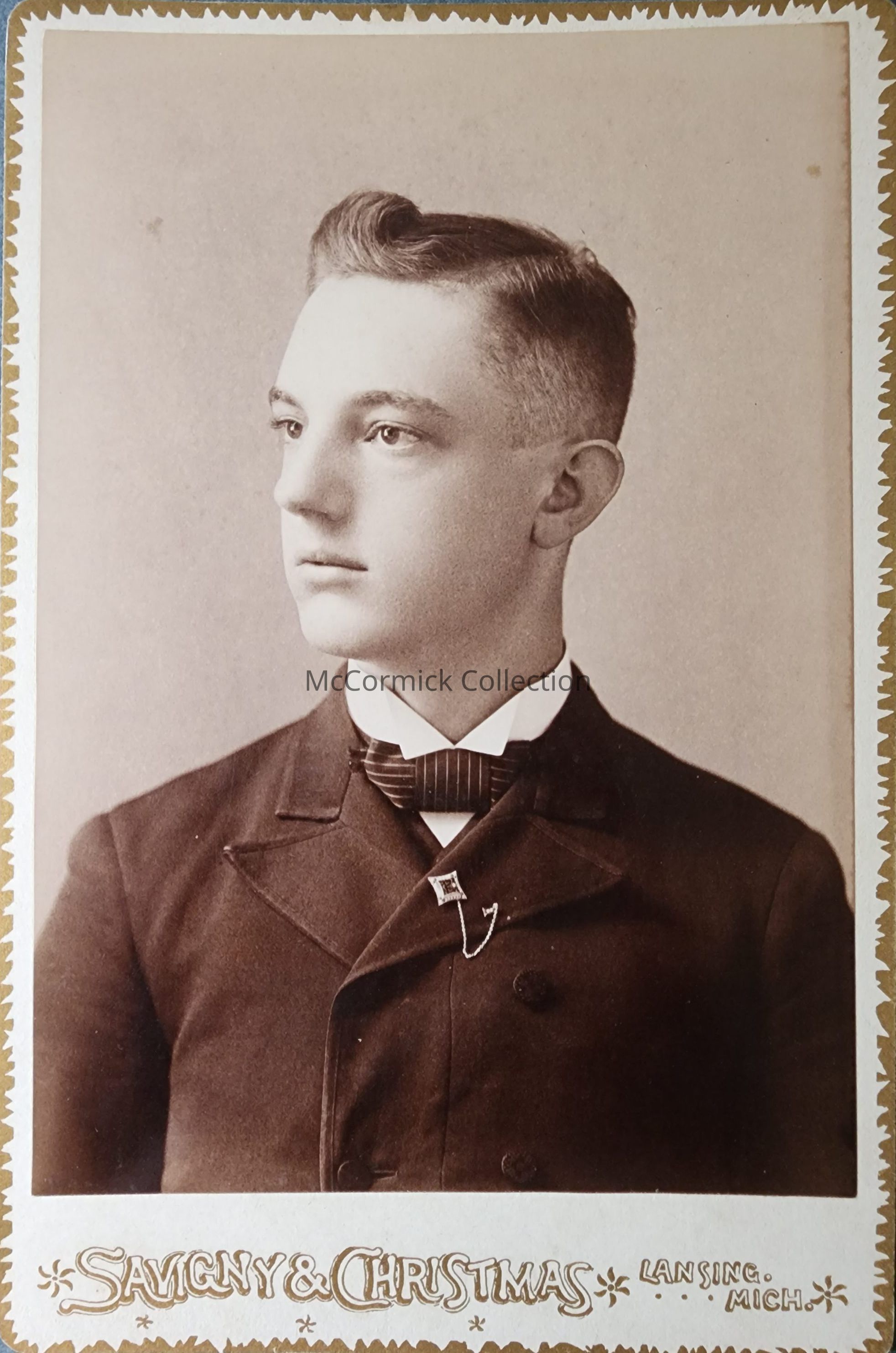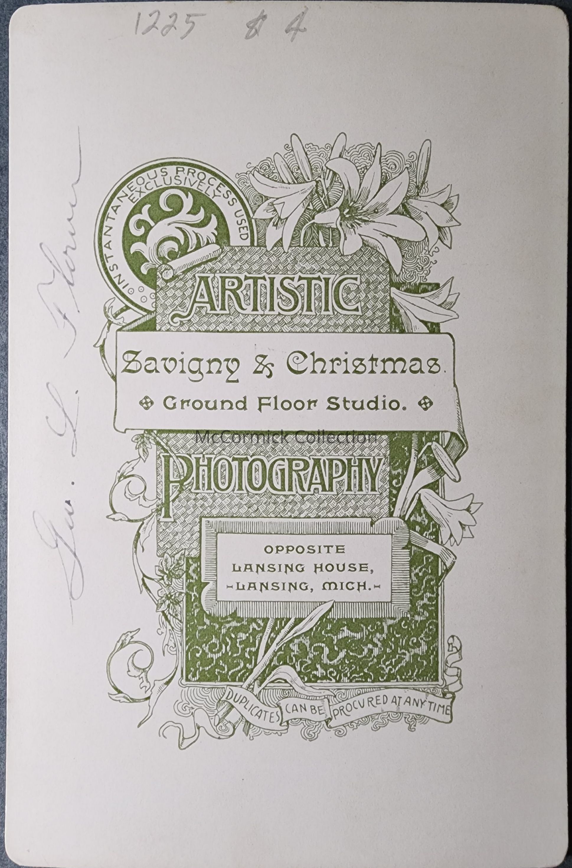 Cabinet card photograph of George L. Flirum (sic), likely an MAC student, by Lansing photographer Savigny and Christmas.