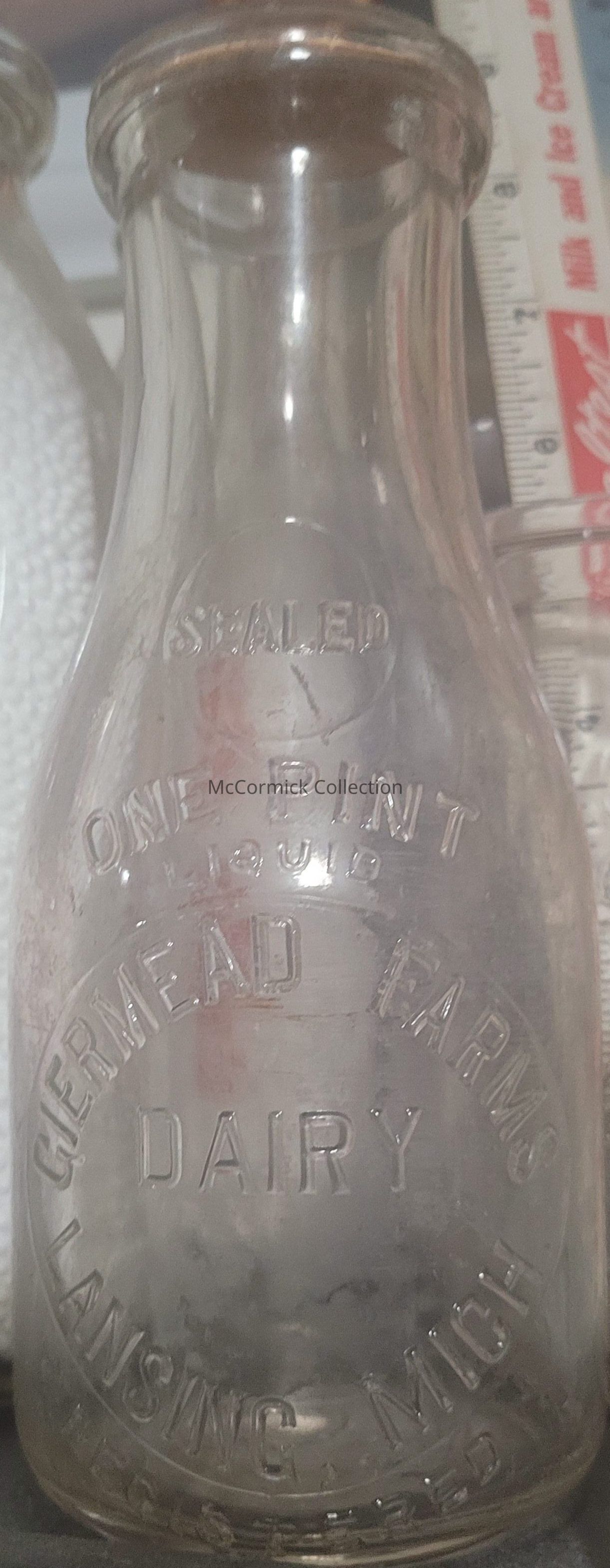 An embossed pint bottle with slug plate for Giermead Farms Dairy of Lansing, Michigan. Two.