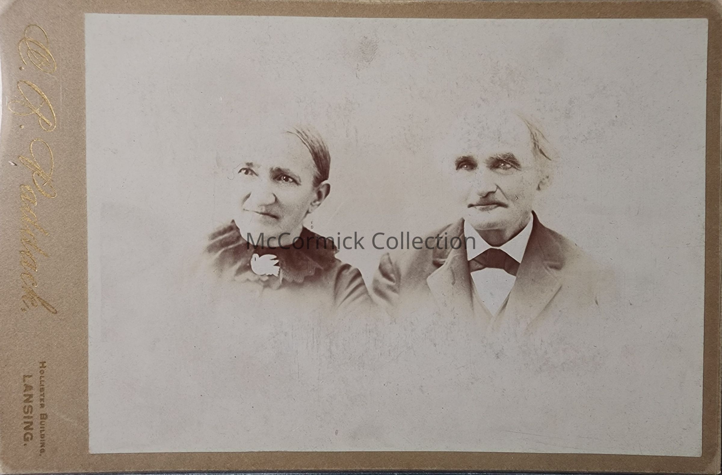 Cabinet card photograph of Gottfried and Christine Oppenlander by Lansing photographer Paddack, horizontal cabinet card.