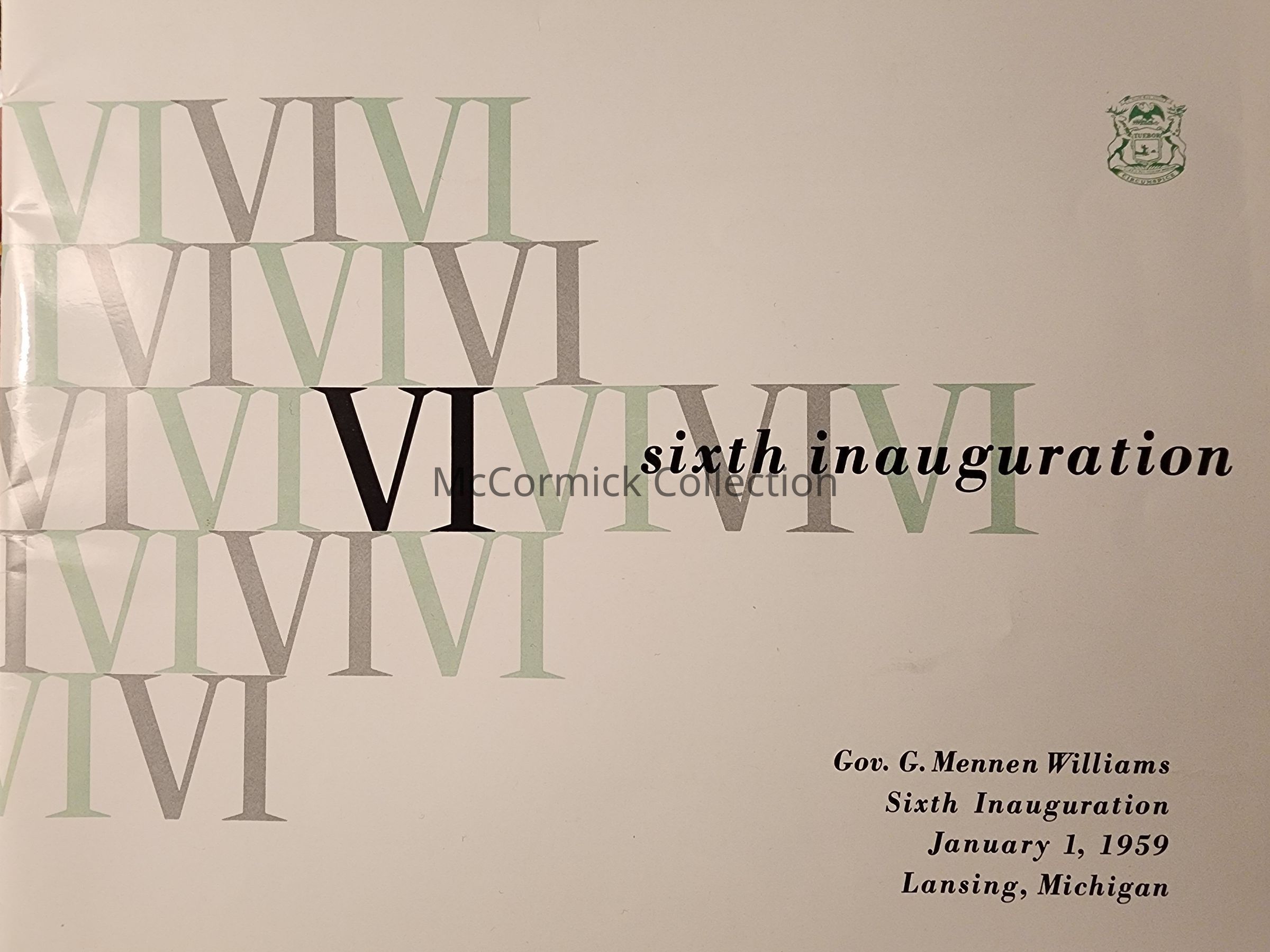 Gov. G. Mennen Williams Sixth Inauguration, January 1, 1959, Lansing, Michigan, Program