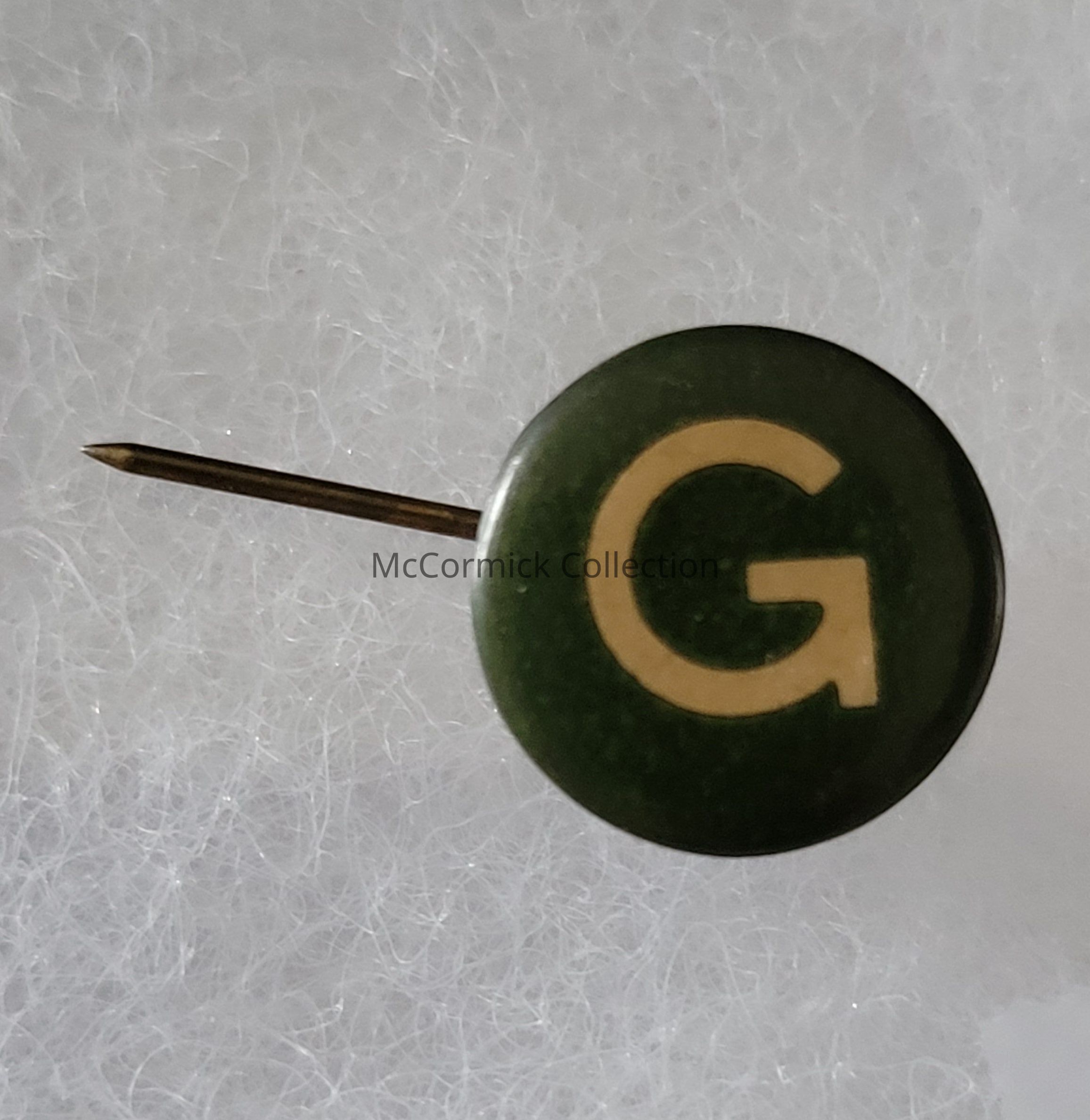 Political button, 1/2", "G" for Fred Green for Governor of Michigan.