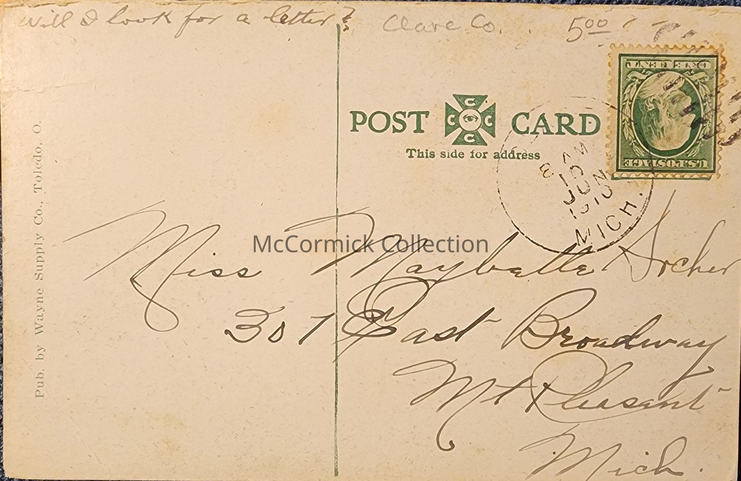 Clare 1910 postmark.