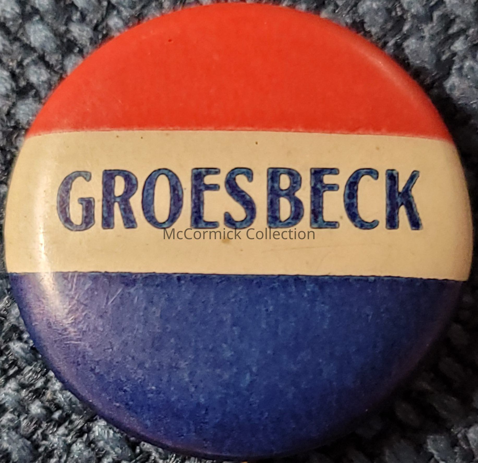 A 1" red, white, and blue political button for Alex J. Groesbeck for Governor of Michigan.