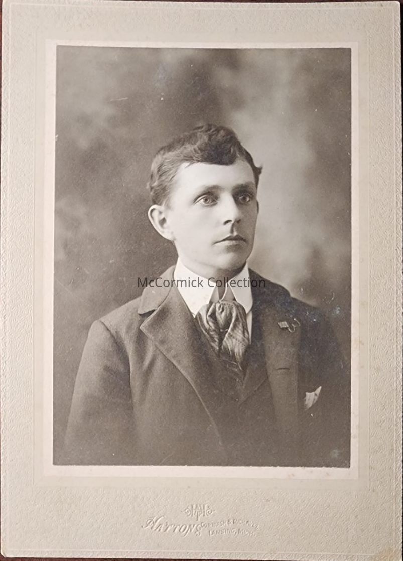 Card mounted photograph of H. Allen Williams of Hoytville, Michigan, Class of 1898 Michigan Agricultural College. Photo by Lansing photographer Hatton. From O.W. Slayton Collection.