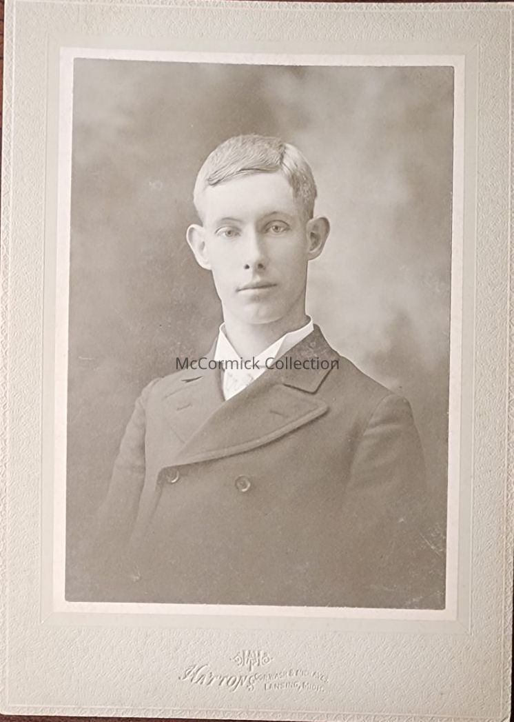 Card mounted photograph of H.C. Skeele of Grand Rapids, Michigan, Class of 1898 Michigan Agricultural College. Photo by Lansing photographer Hatton. From O.W. Slayton Collection.