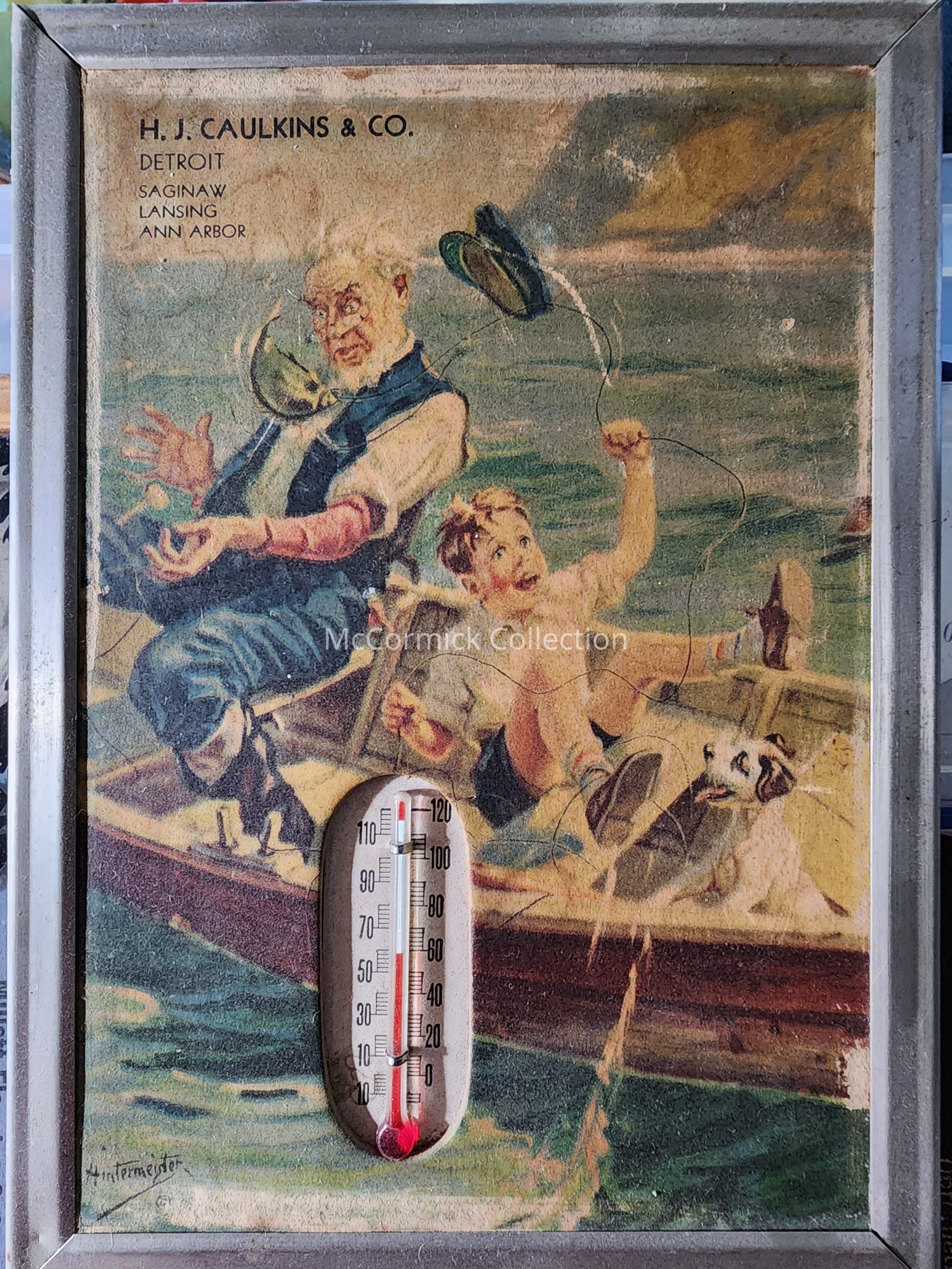 An advertising thermometer from H.J. Caulkins & Co. of Lansing, Detroit, Saginaw, and Ann Arbor.