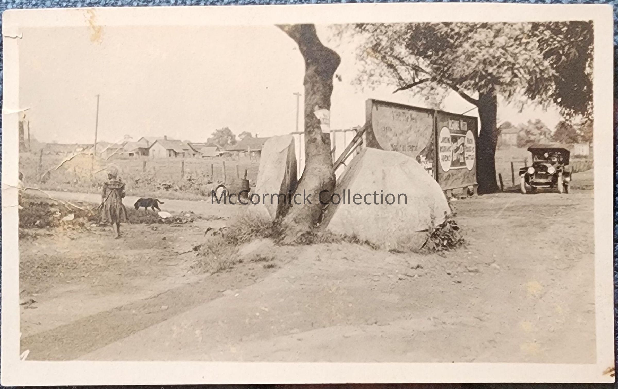 Snapshot photograph of the halfway rock or split rock along Michigan Avenue between Lansing and East Lansing, circa 1920s.