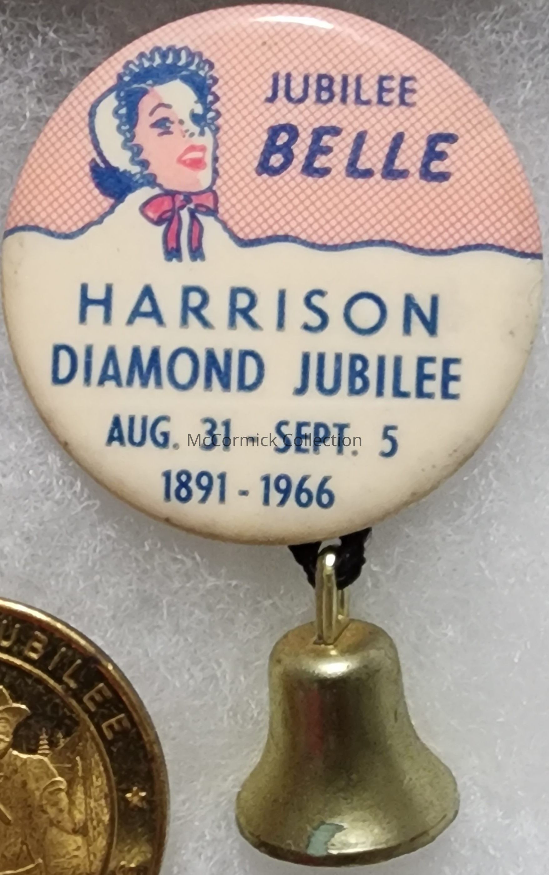 Button and attached bell from the Harrison, Clare County, Michigan, Diamond Jubilee of 1966.