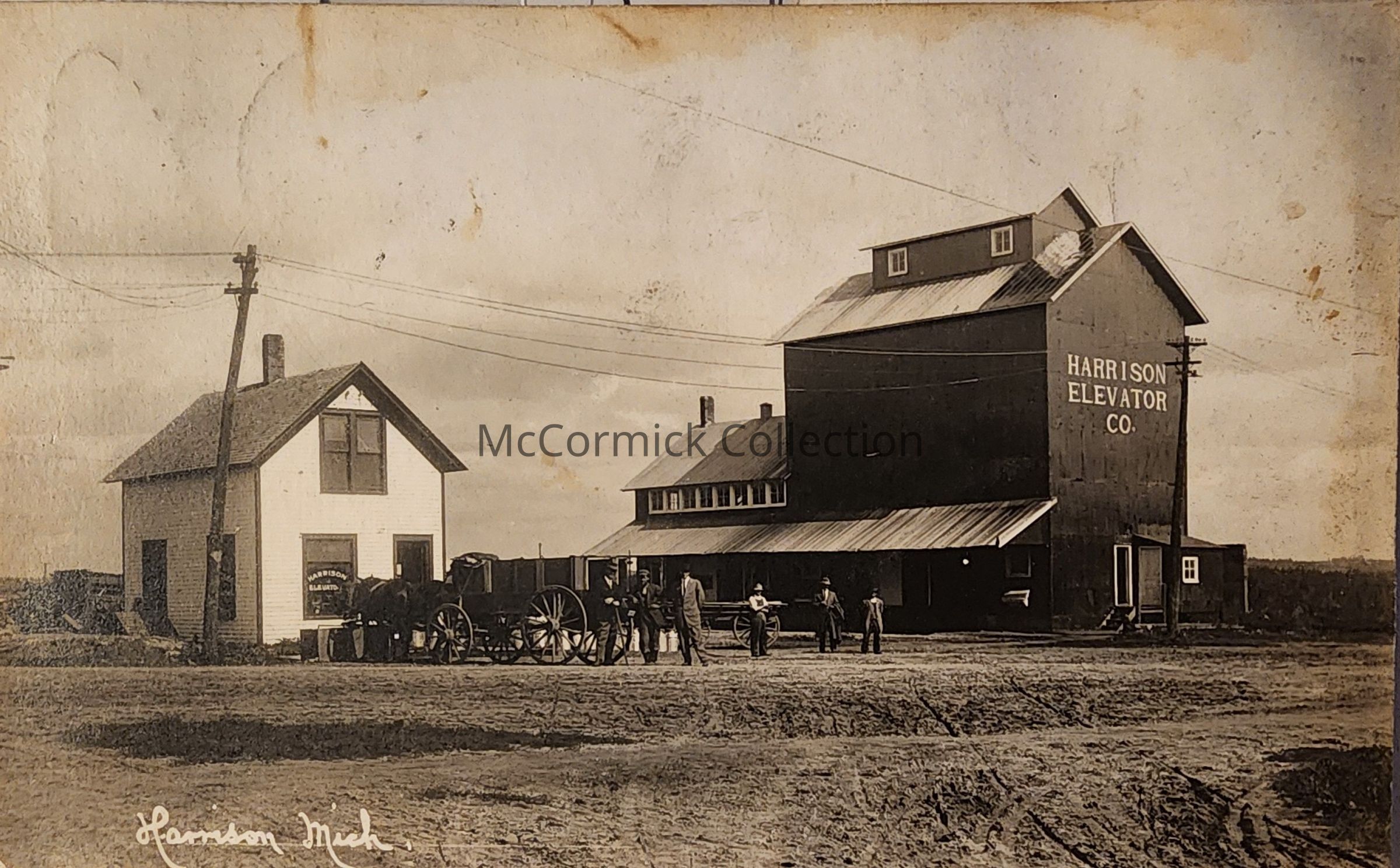 Real photo postcard of the Harrison Elevator Co., Harrison, Michigan. Postmarked 1916.