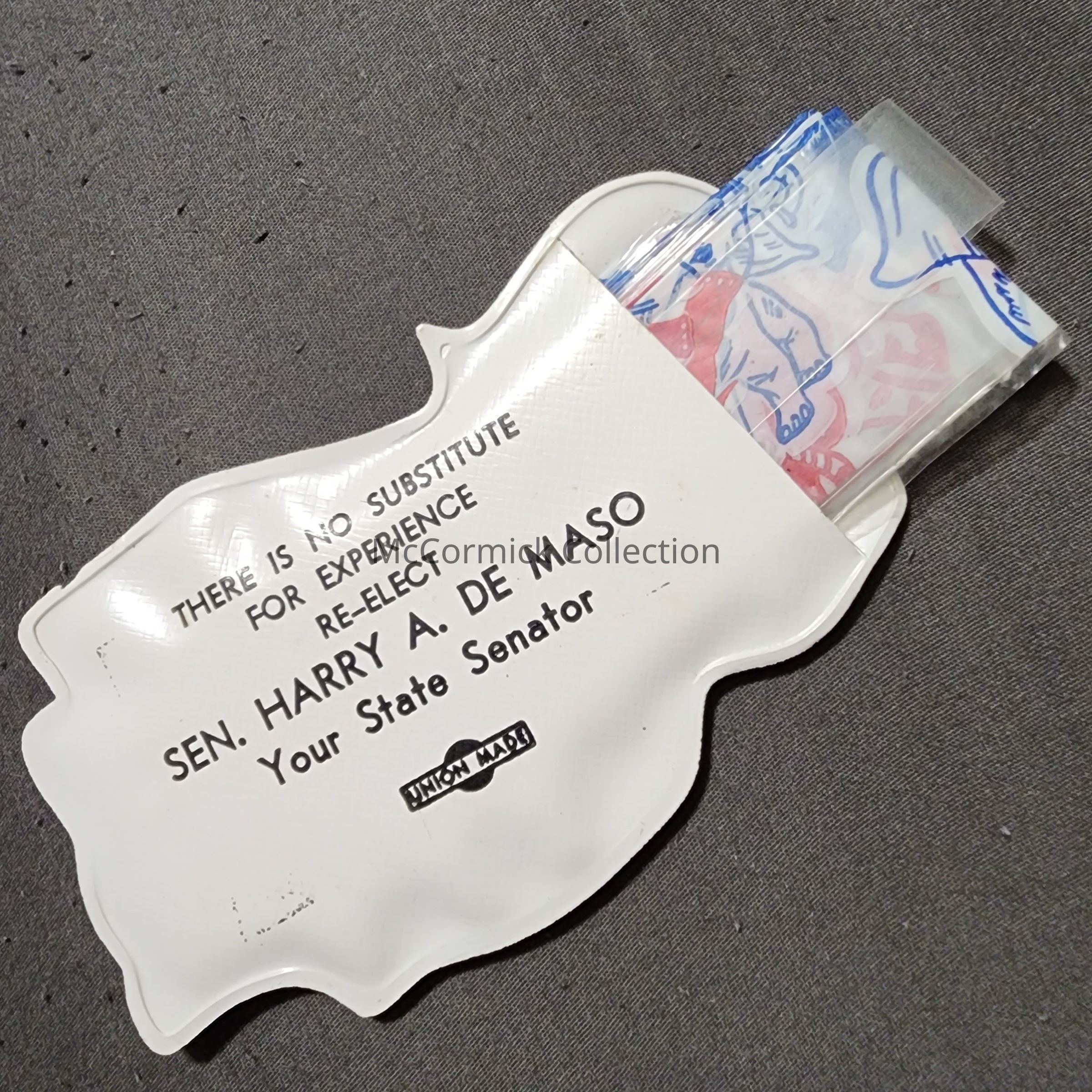 A vinyl and plastic Reelection Campaign elephant shaped umbrella bag giveaway for State Sen. Harry A. DeMaso.