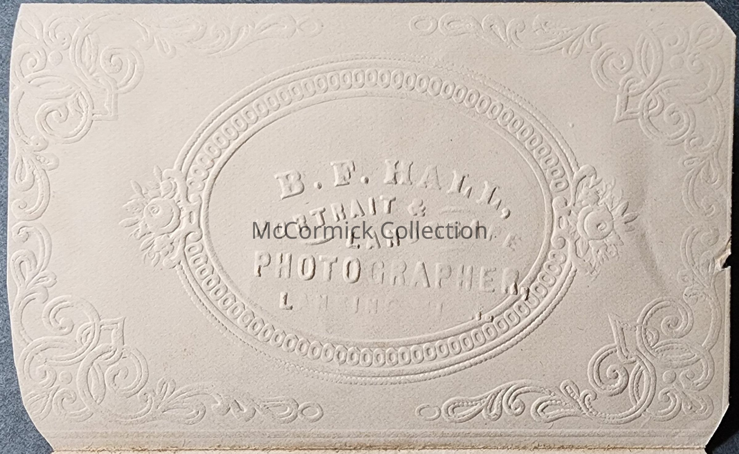 Tintype photograph of Hattie Pike in a paper frame by Lansing photographer B.F. Hall.