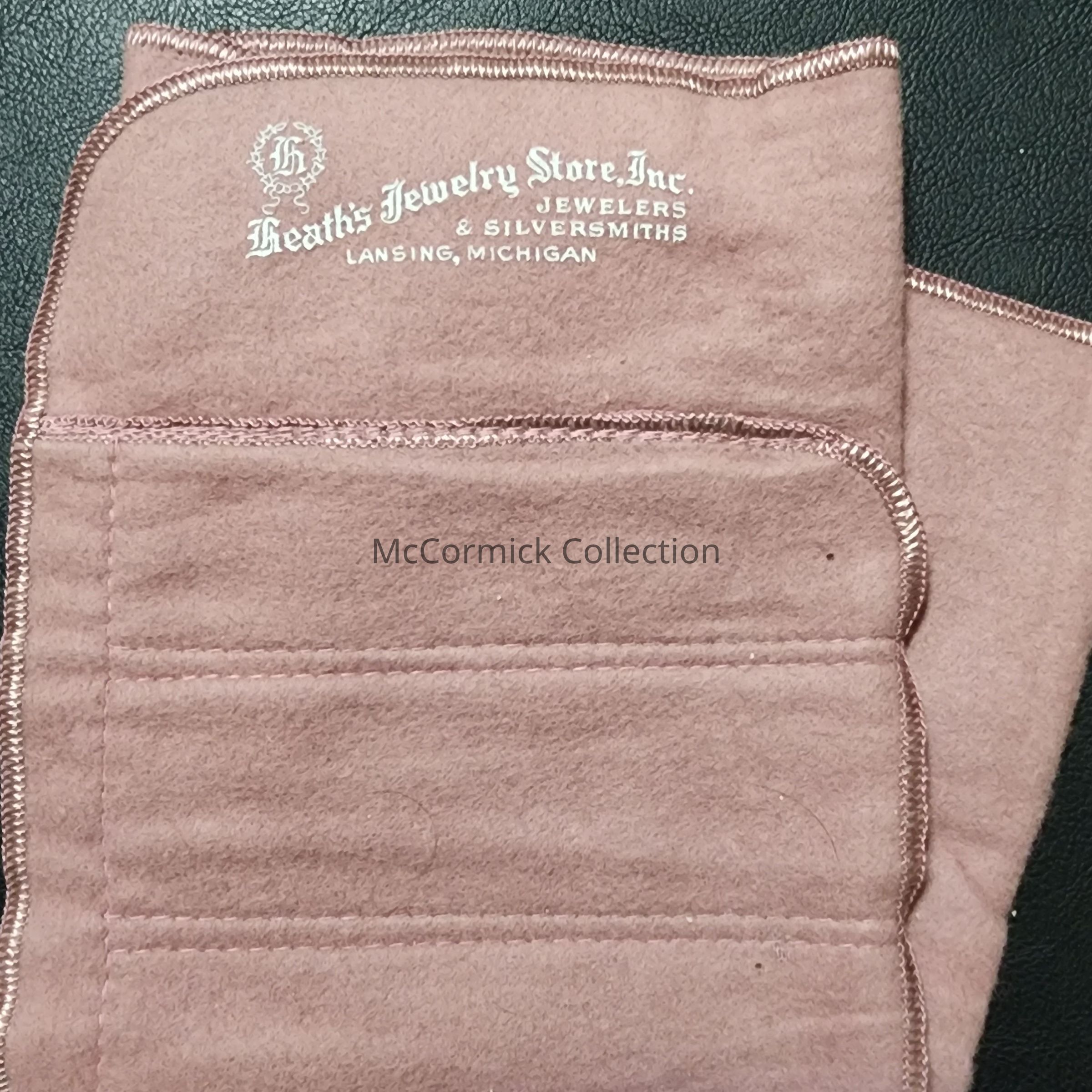 Pink polishing cloth from Heath's Jewelry Store in North Lansing. Heath also worked as a photographer in the late 19th century.