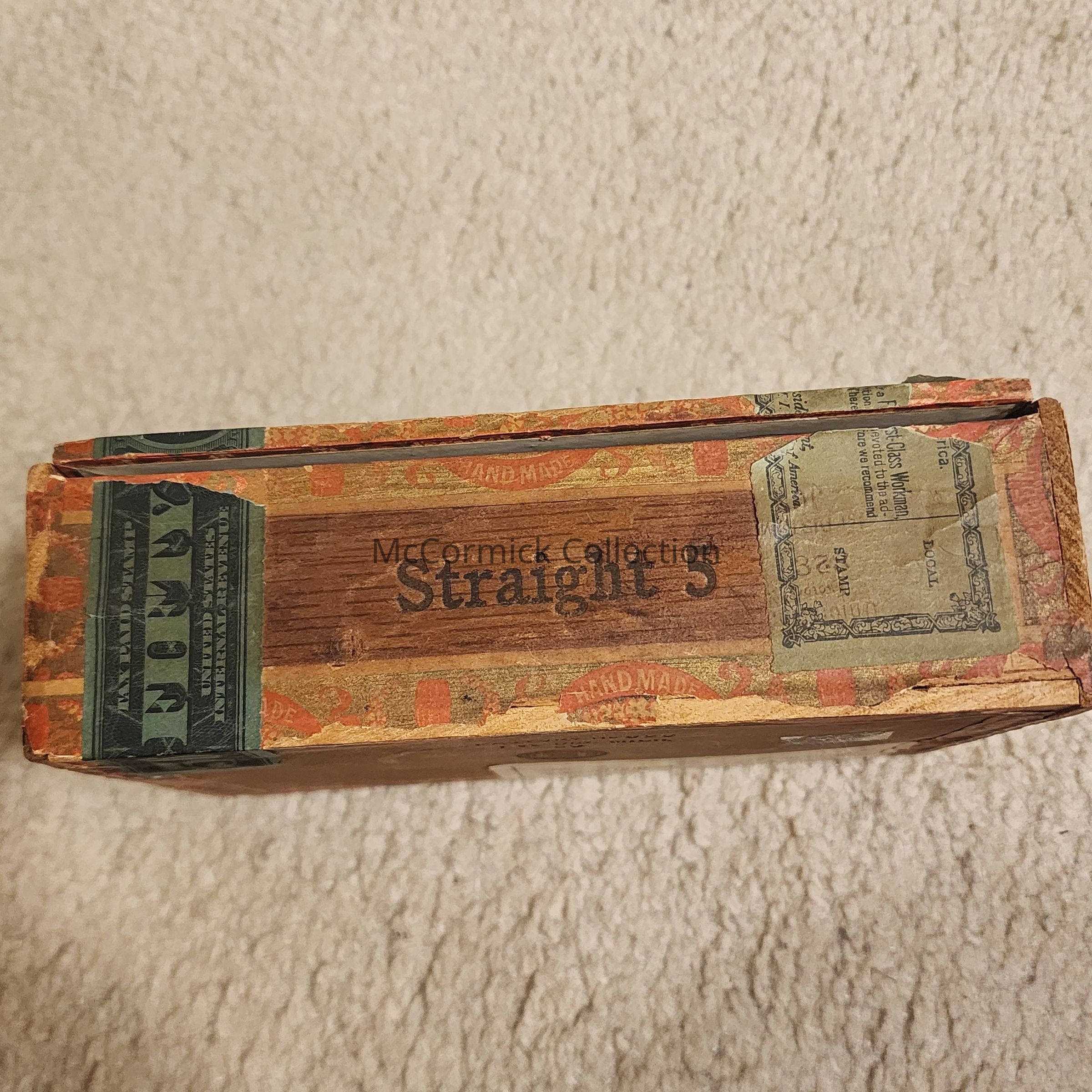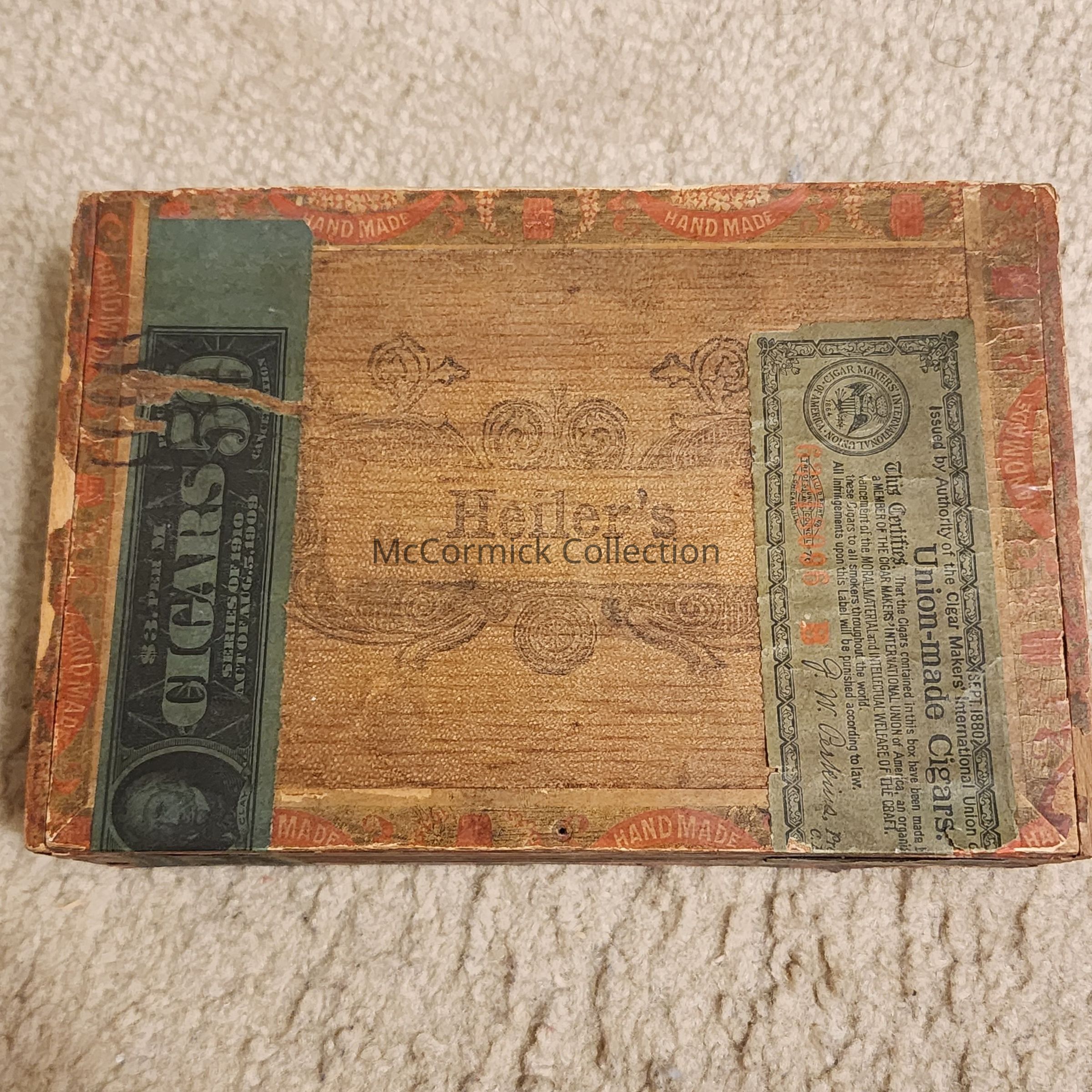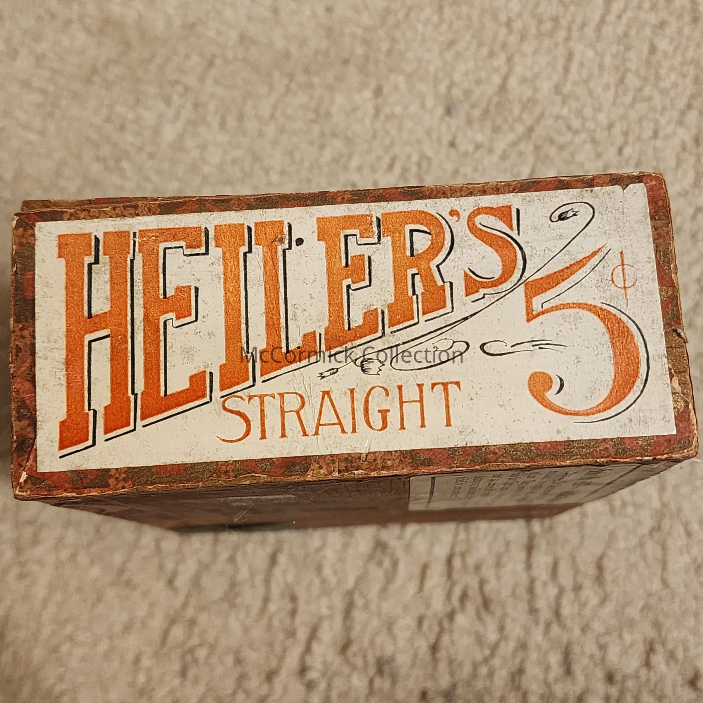 An antique advertising cigar box from Lansing, Michigan, by Heiler's Straight Five.