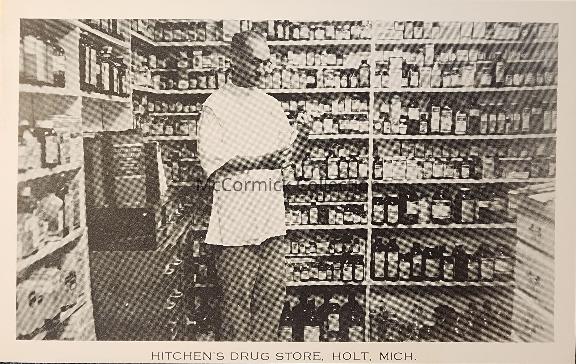 Hitchens Drug Store, Holt, Mich., Postcard