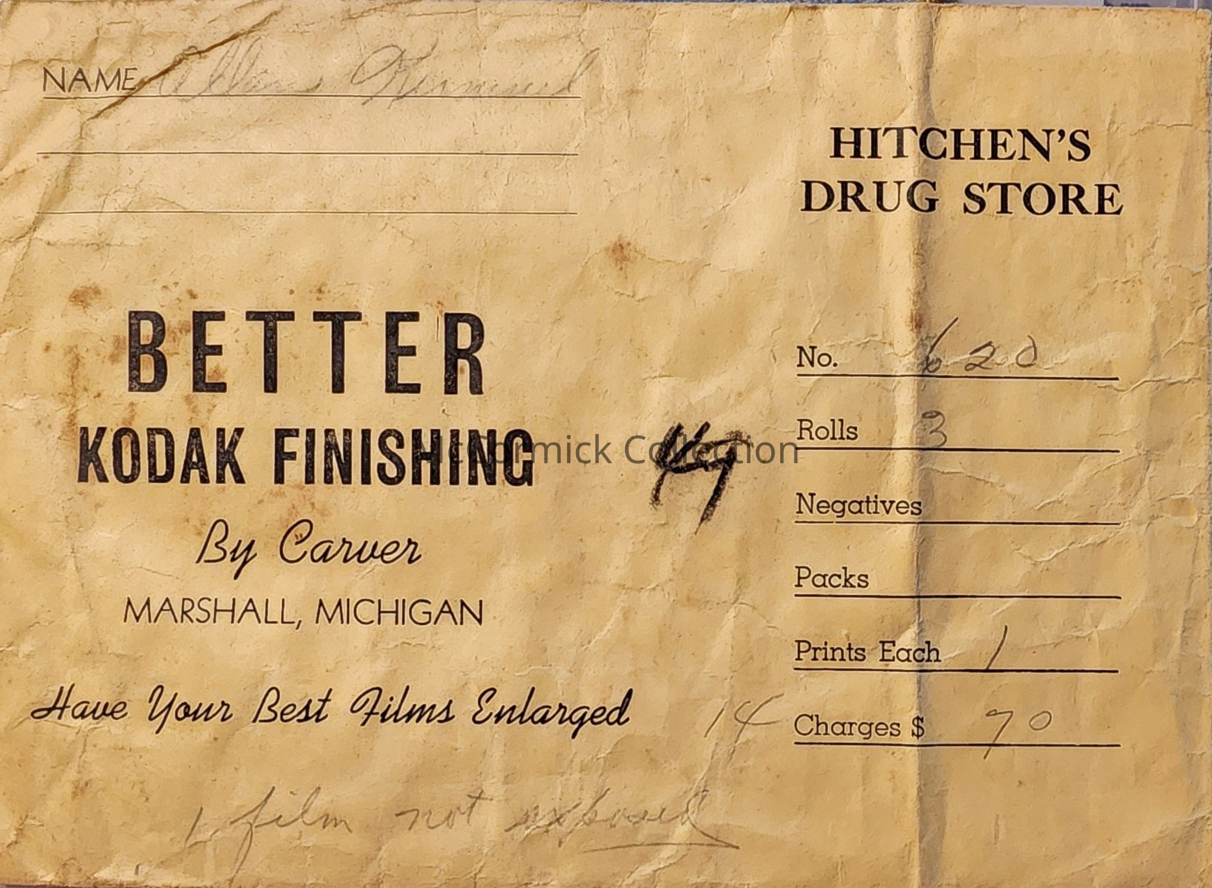 Hitchens Drug Store Kodak Photo Envelope