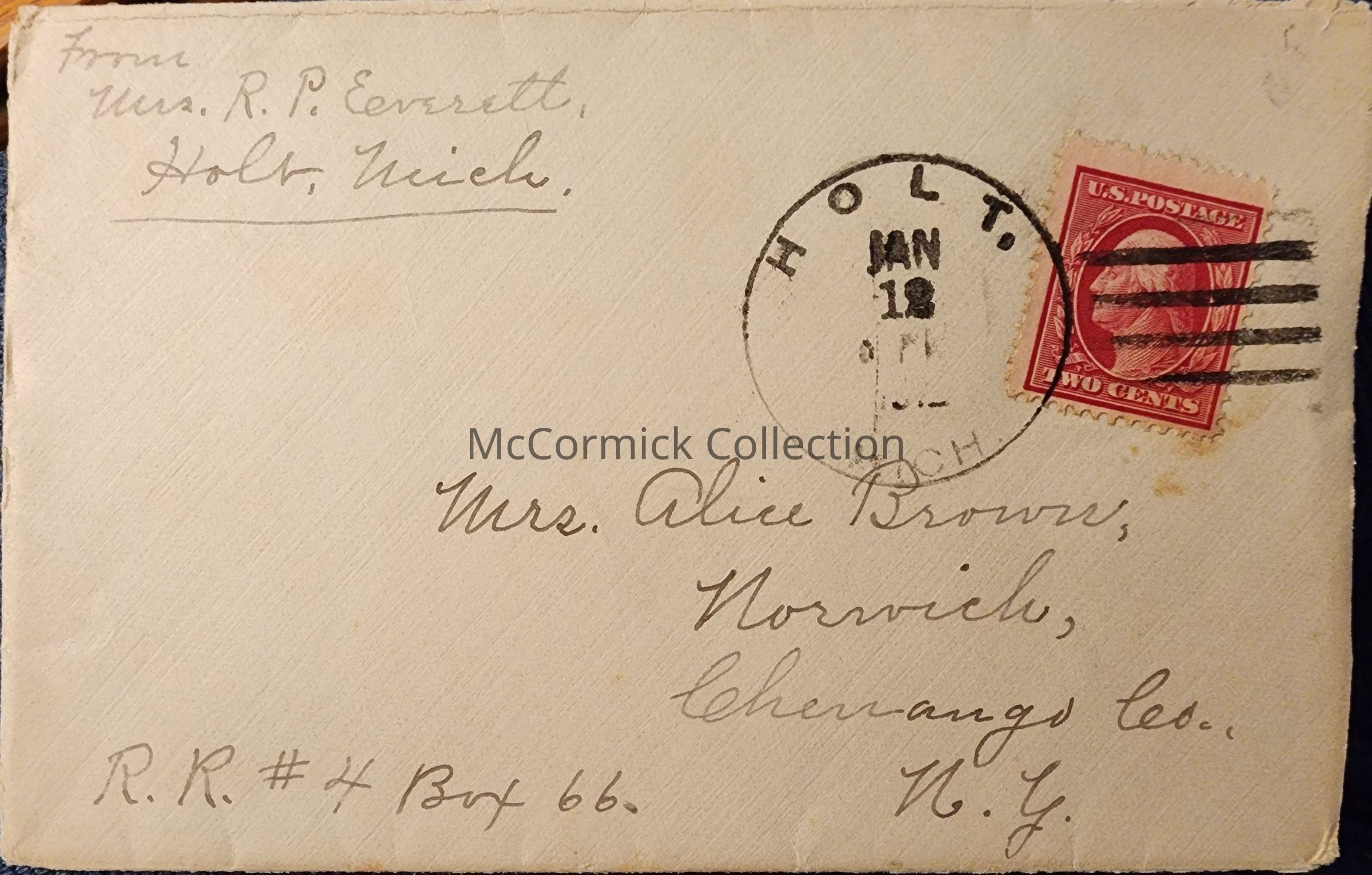 Holt, Mich., 1912, Postal Cover