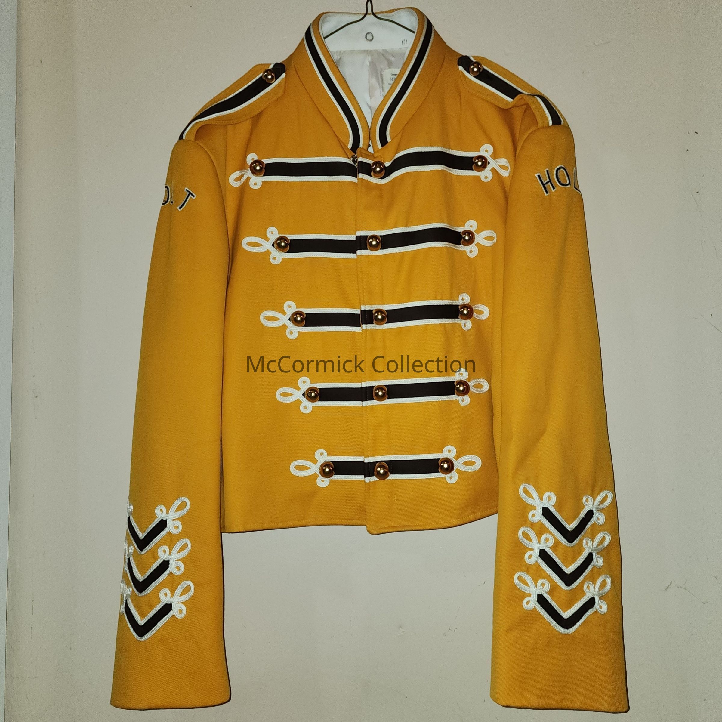 Gold marching band uniform jacket and brown pants (not pictured) worn by the Holt Band from 1988 to 1994. This set of uniforms sat unused in the upper level of the band room at the Holt Junior High School (later 9th grade, then senior campus) until 2021. They were sold by the Holt Band Boosters as a fundraiser, and were supposed to have been made into pillows but I never learned of that coming to fruition.