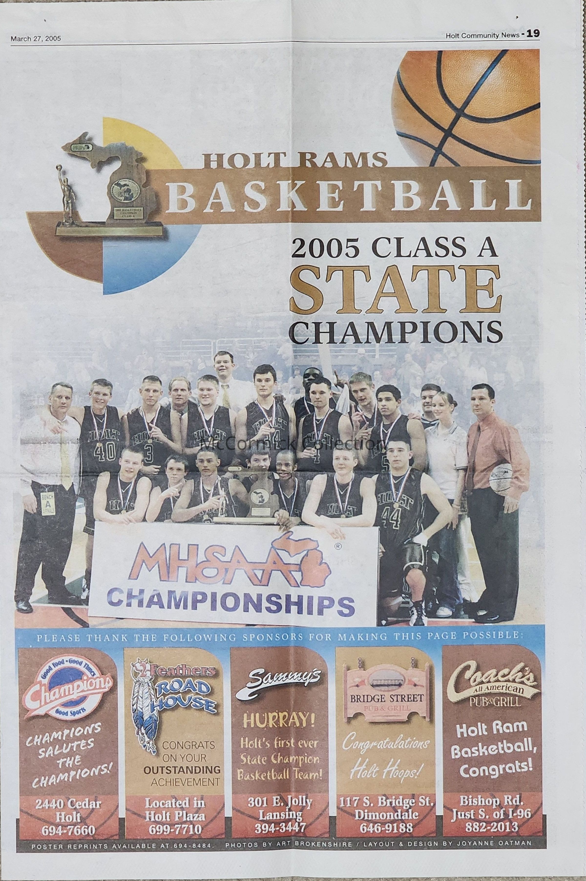 Holt Rams Basketball 2005 Class A State Champions Newspaper