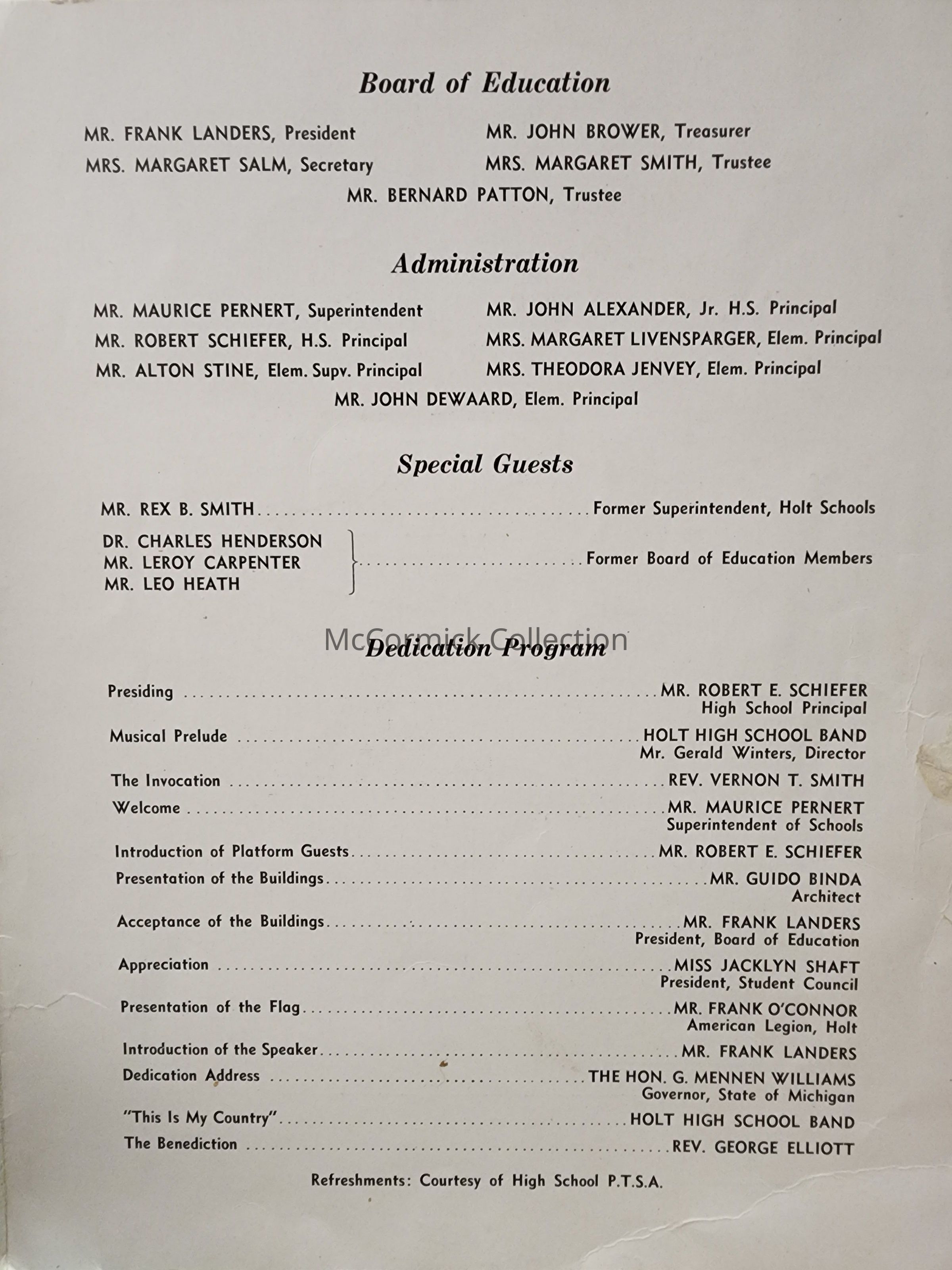 Holt Senior High School Dedication and Open House Program, 1958