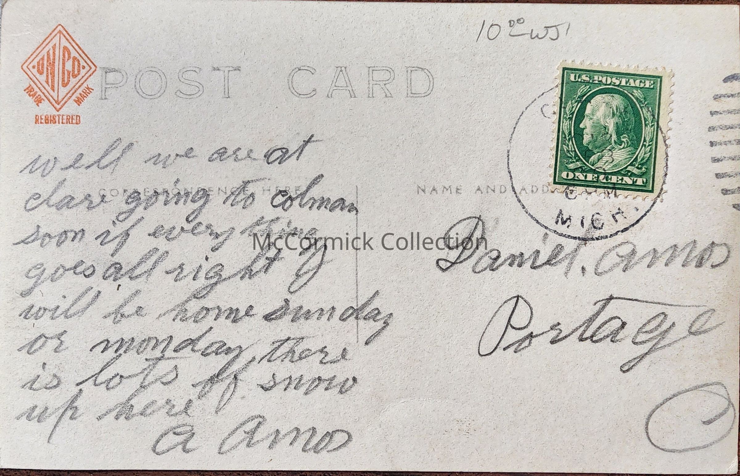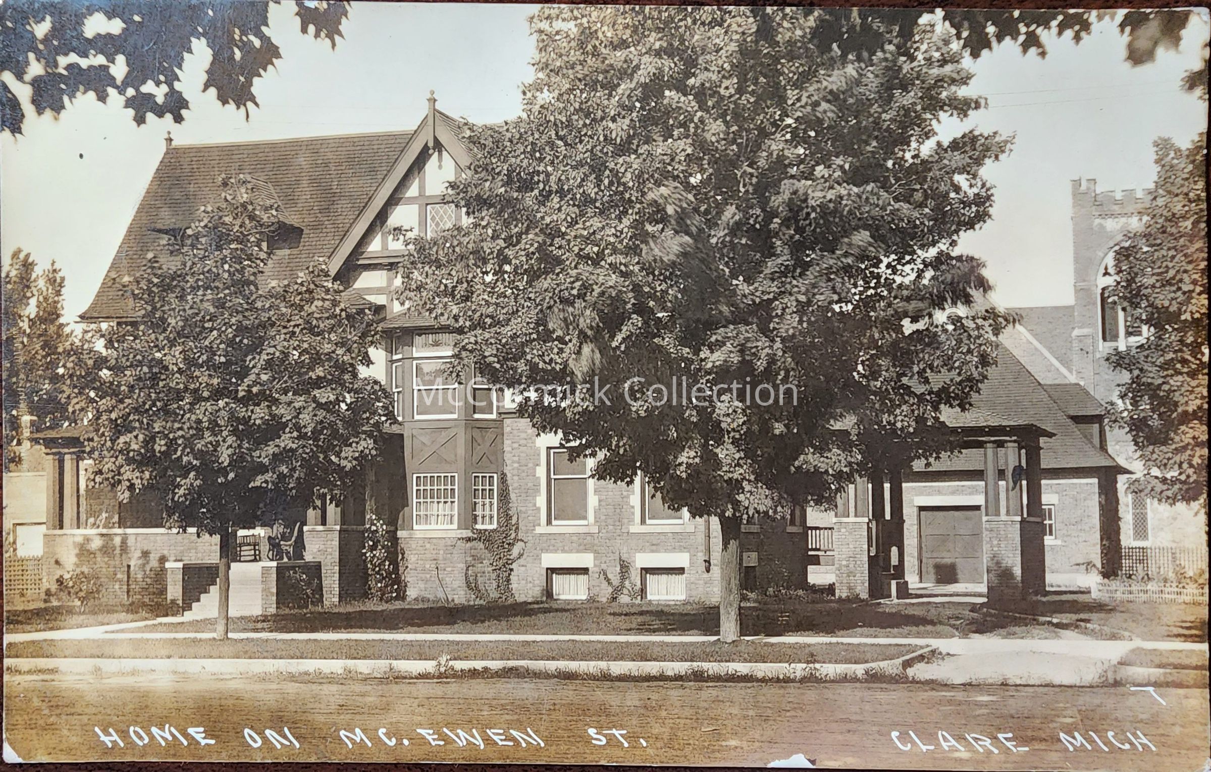 Real photo postcard of the Doherty Home on McEwen Street, Clare, Michigan.