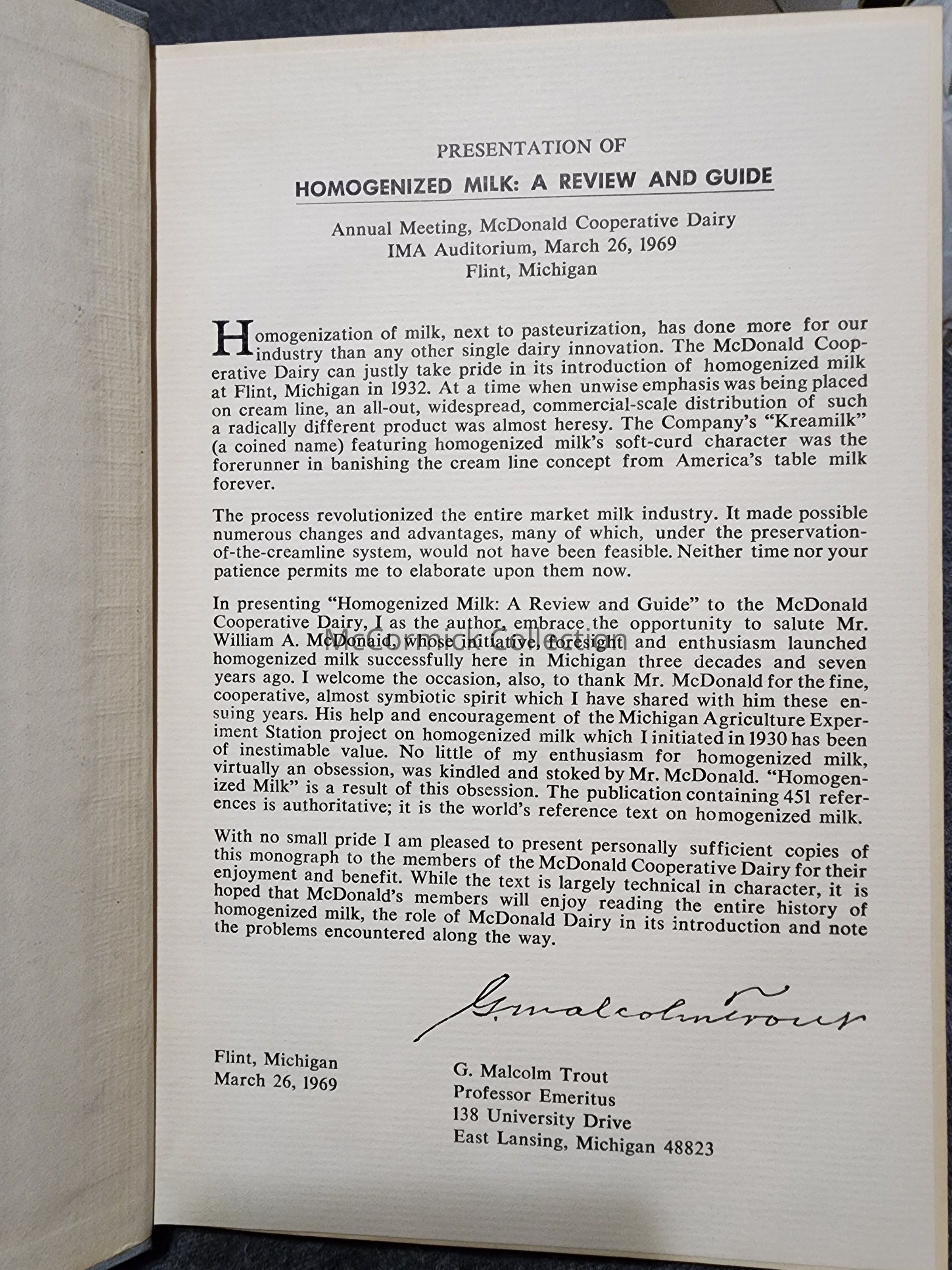 By G. Malcolm Trout, Michigan State University professor who discovered milk homogenization. Published by the MSC Press, 1950.