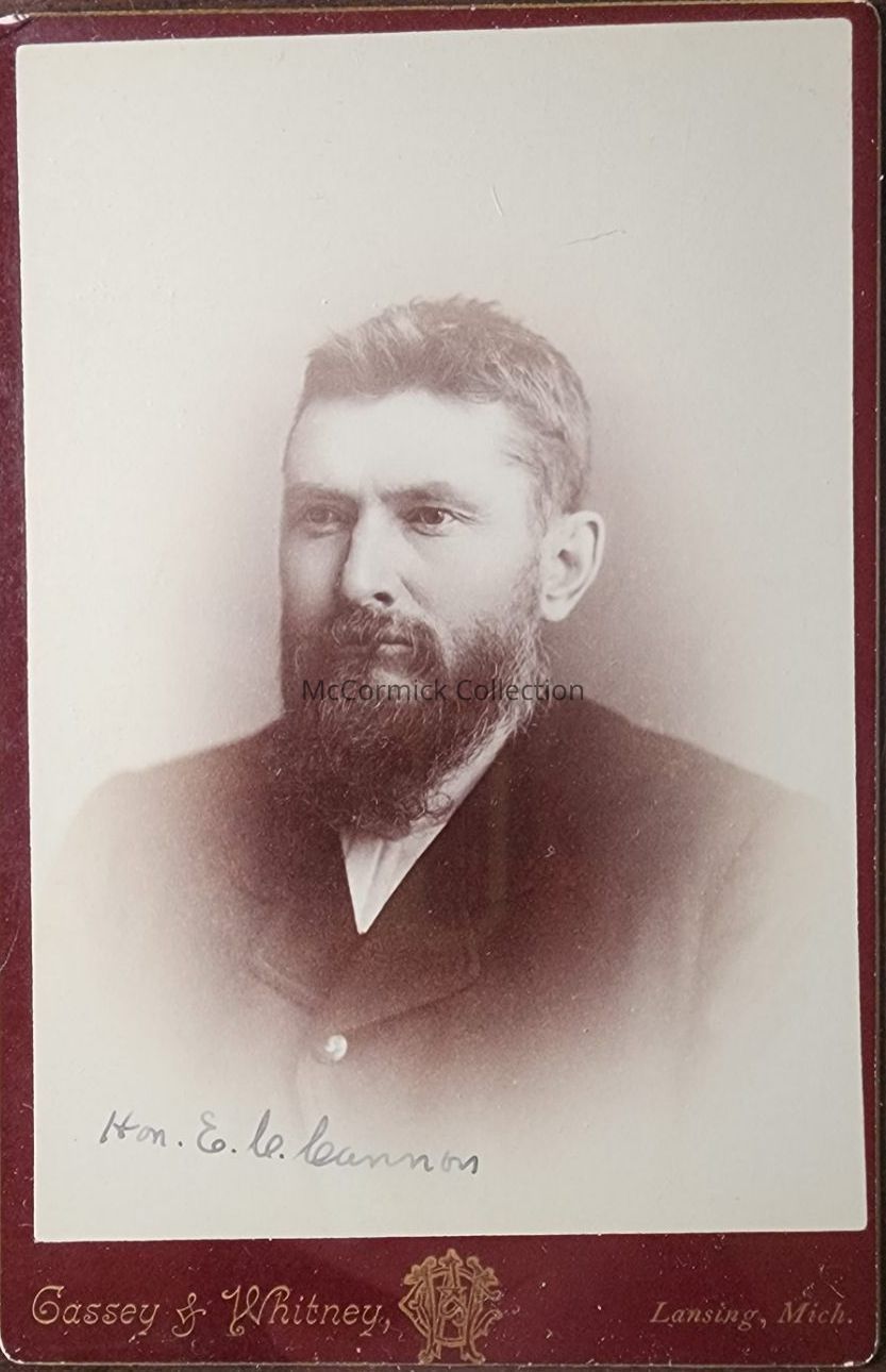 Cabinet card photograph of Hon. E.C. Cannon by Lansing photographer Cassey and Whitney. State Representative, 1885-1888, State Senator, 1901-1904, from Osceola County.