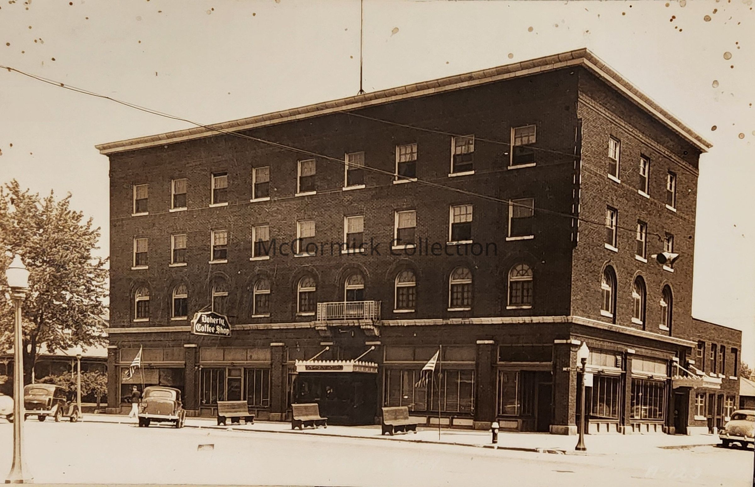 Real photo postcard of the Hotel Doherty in Clare, Michigan.