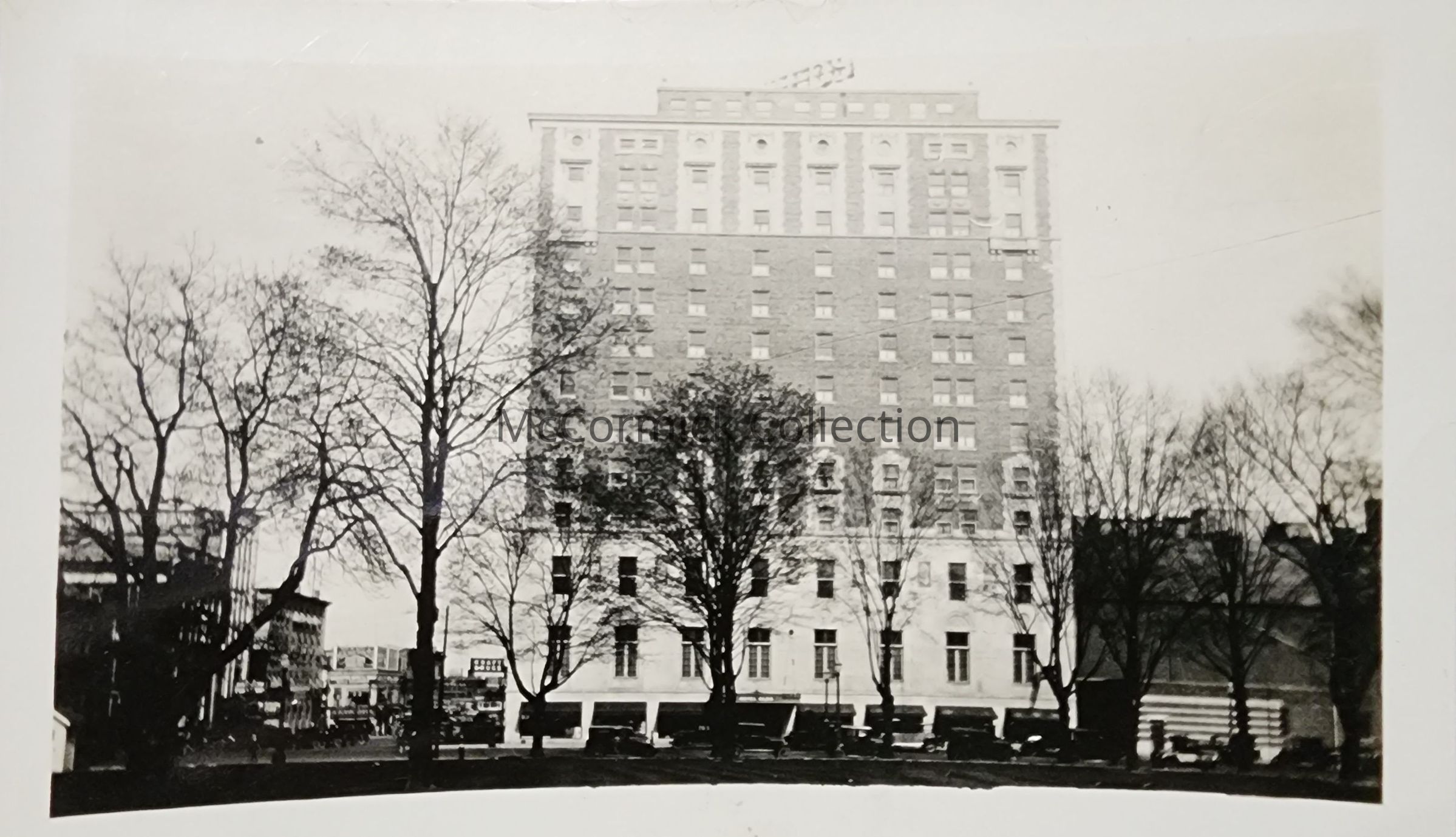 Snapshot photograph of the new Hotel Olds from Capitol Square in Lansing, Michigan.