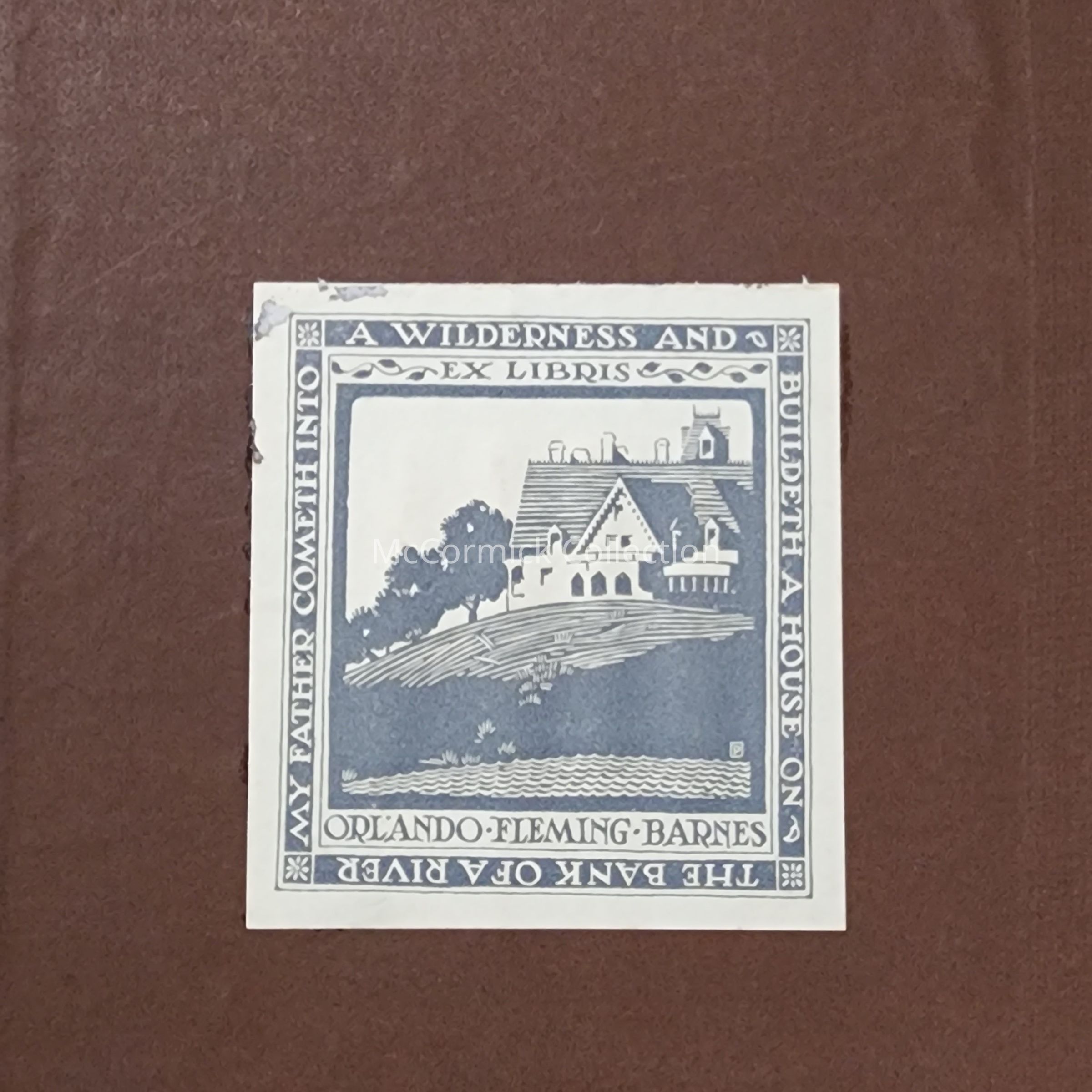Book plate reads: "My Father Cometh Into a Wilderness and Buildeth a House on the Bank of a River."