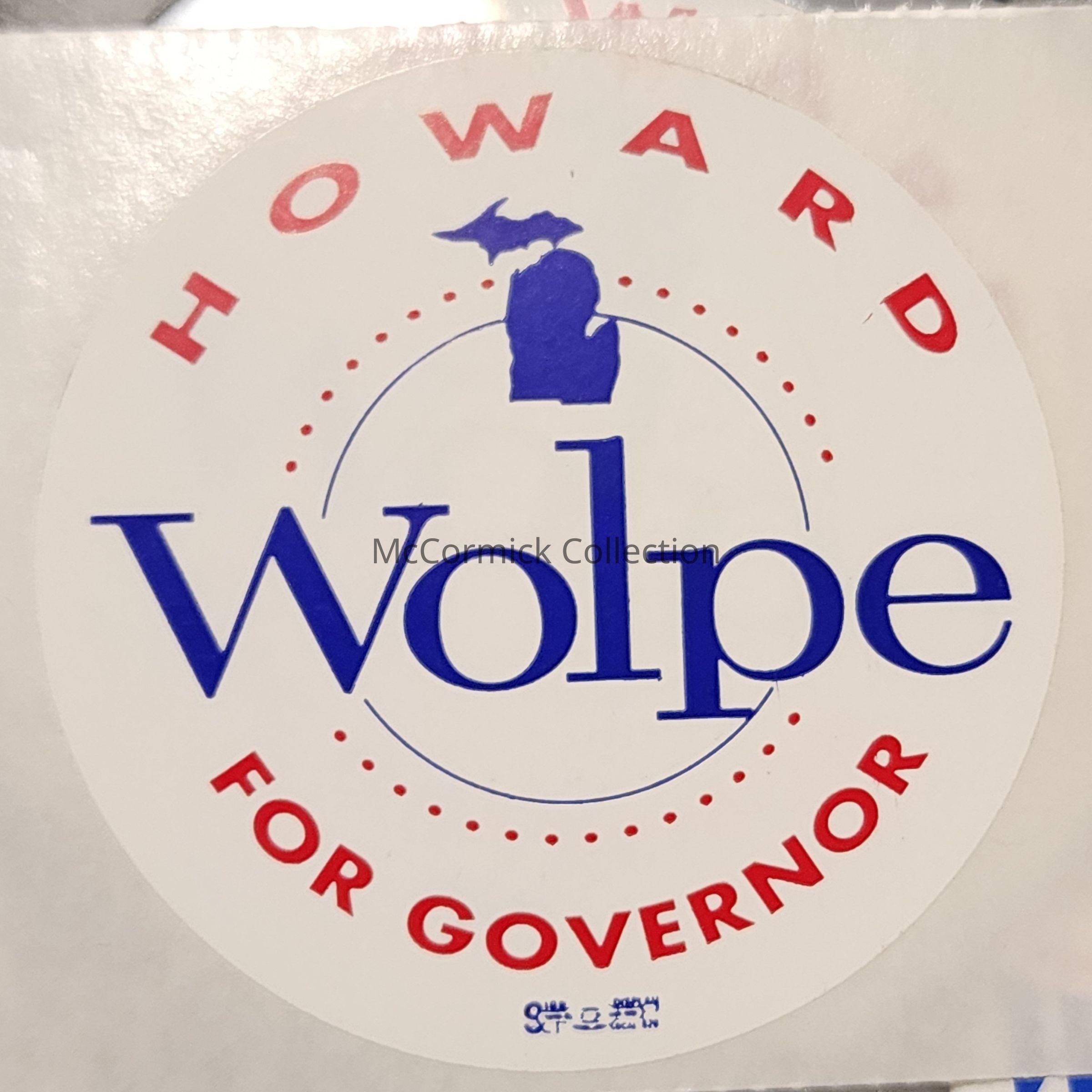 A 3" political sticker for Howard Wolpe for Governor, 1994.