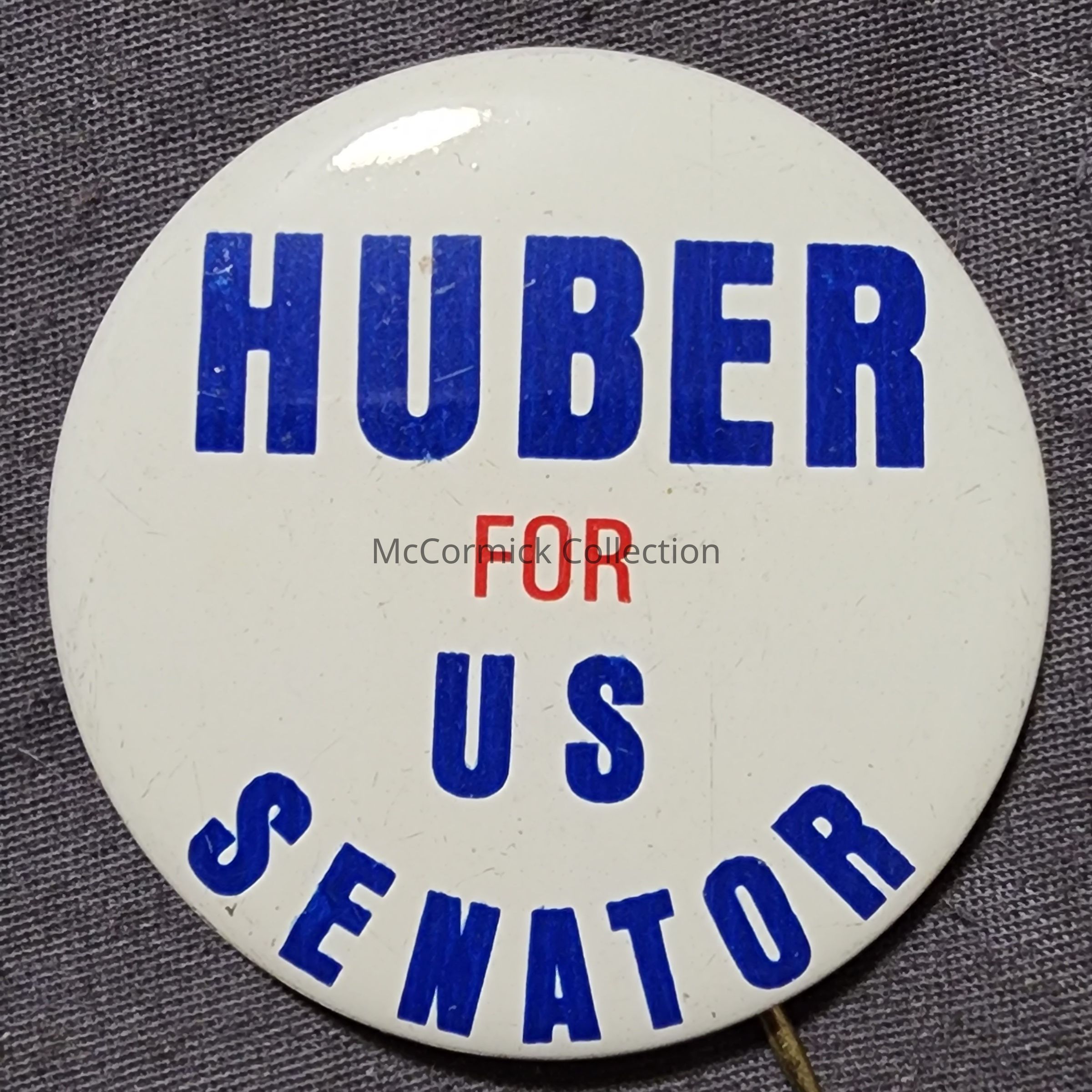 A 1.75" red, white, and blue political button for Bob Huber for United States Senate.