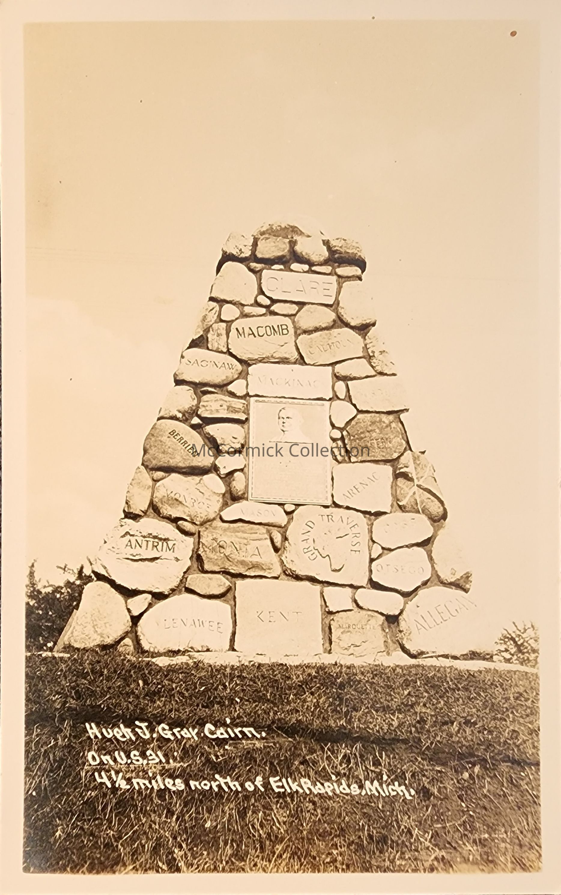 Hugh J. Gray Cairn Monument, Elk Rapids, Mich., RPPC