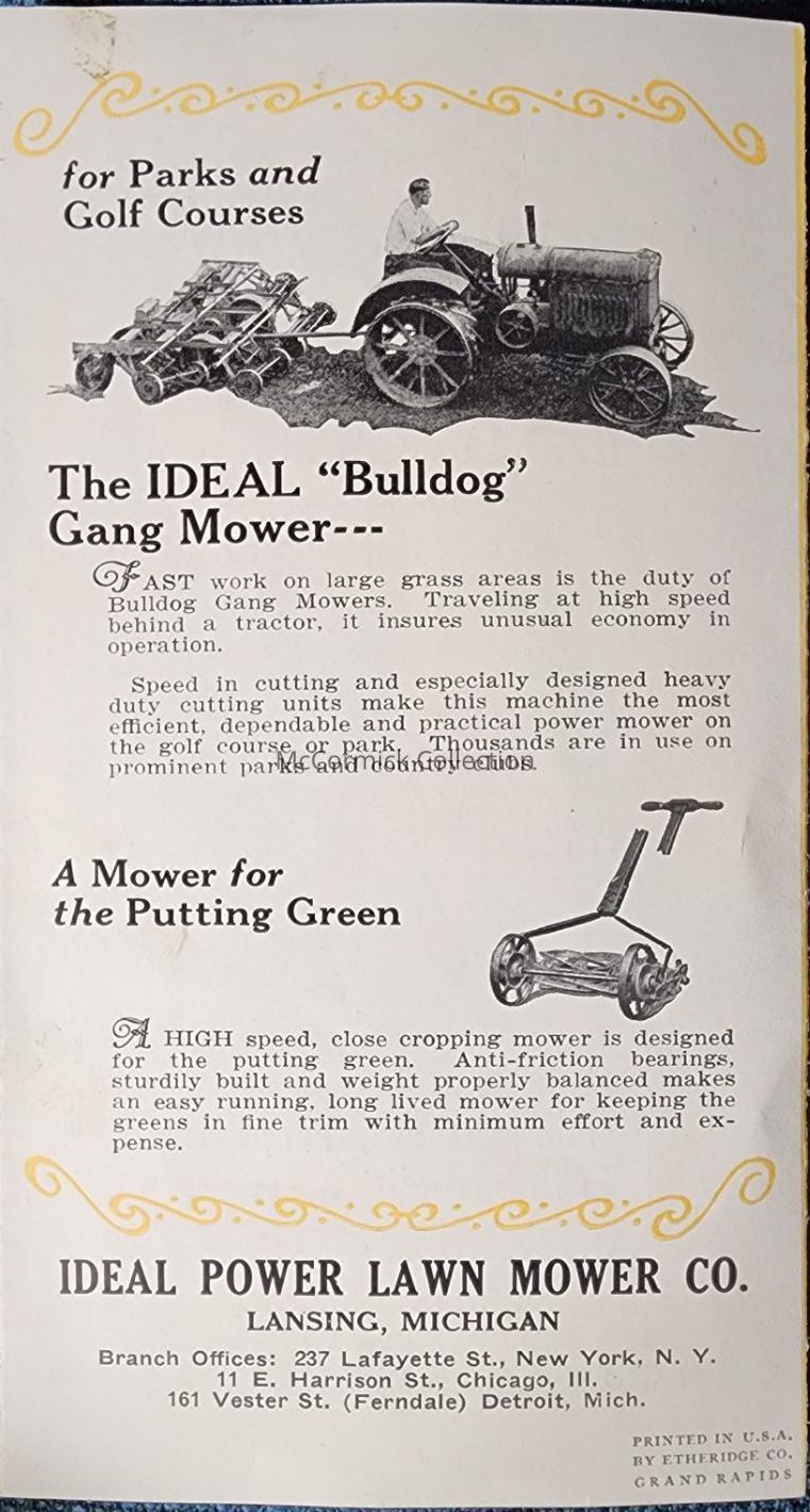 Ideal Power Lawn Mowers, Lansing, Mich. Pamphlet