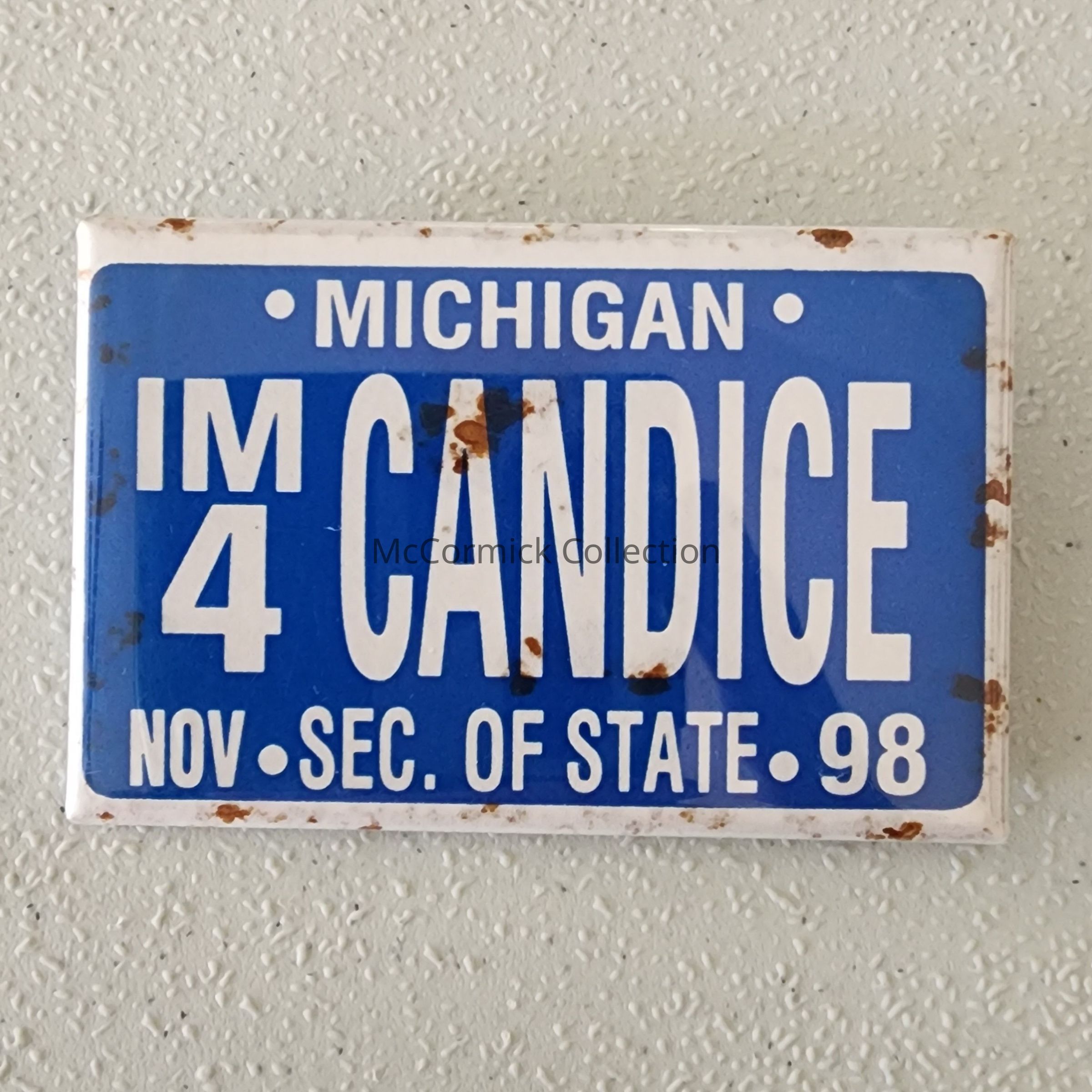 I'm 4 Candice Secretary of State 1998 License Plate ButtonEntry/Object ID