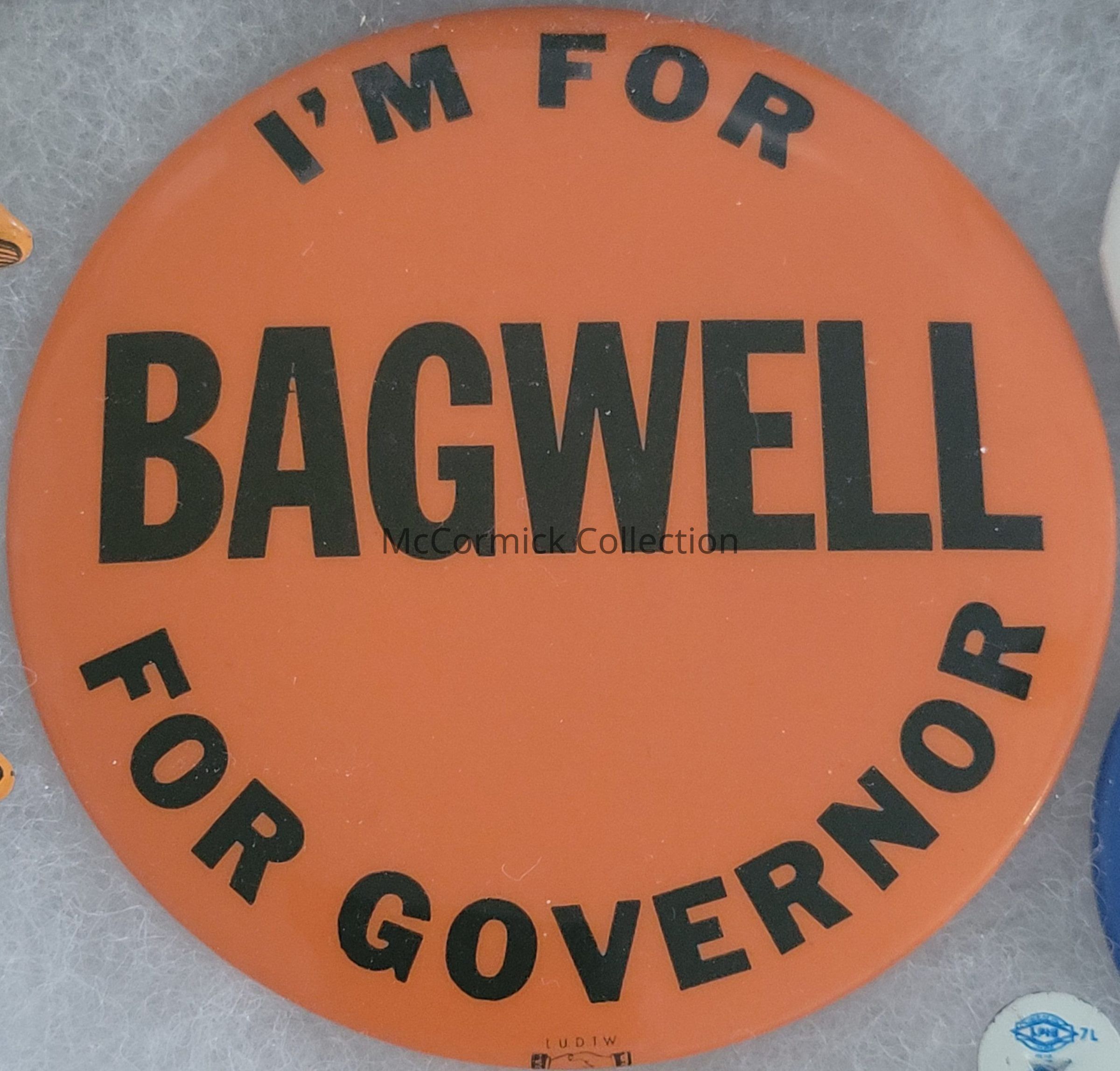 A 3" orange and black political button for Paul Bagwell for Governor, circa 1960.