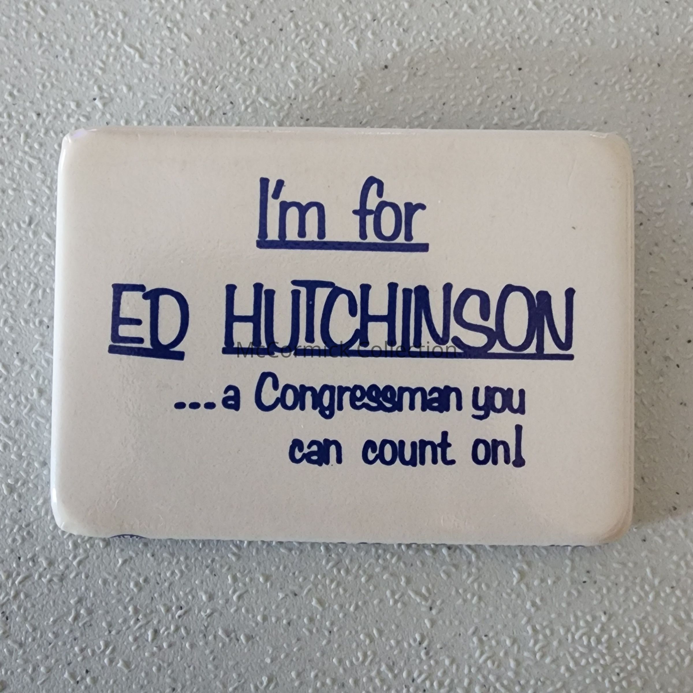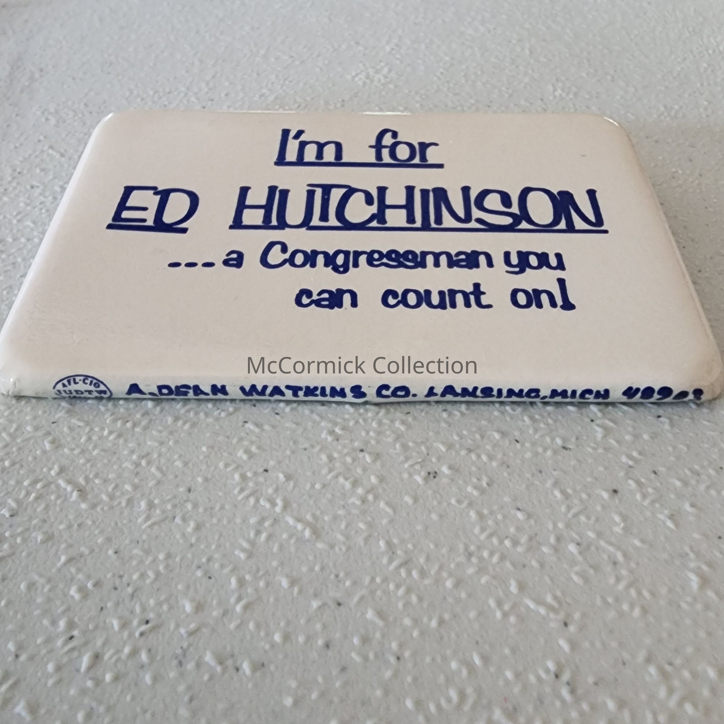 A blue and white rectangular political button for Ed Hutchinson for Congress.