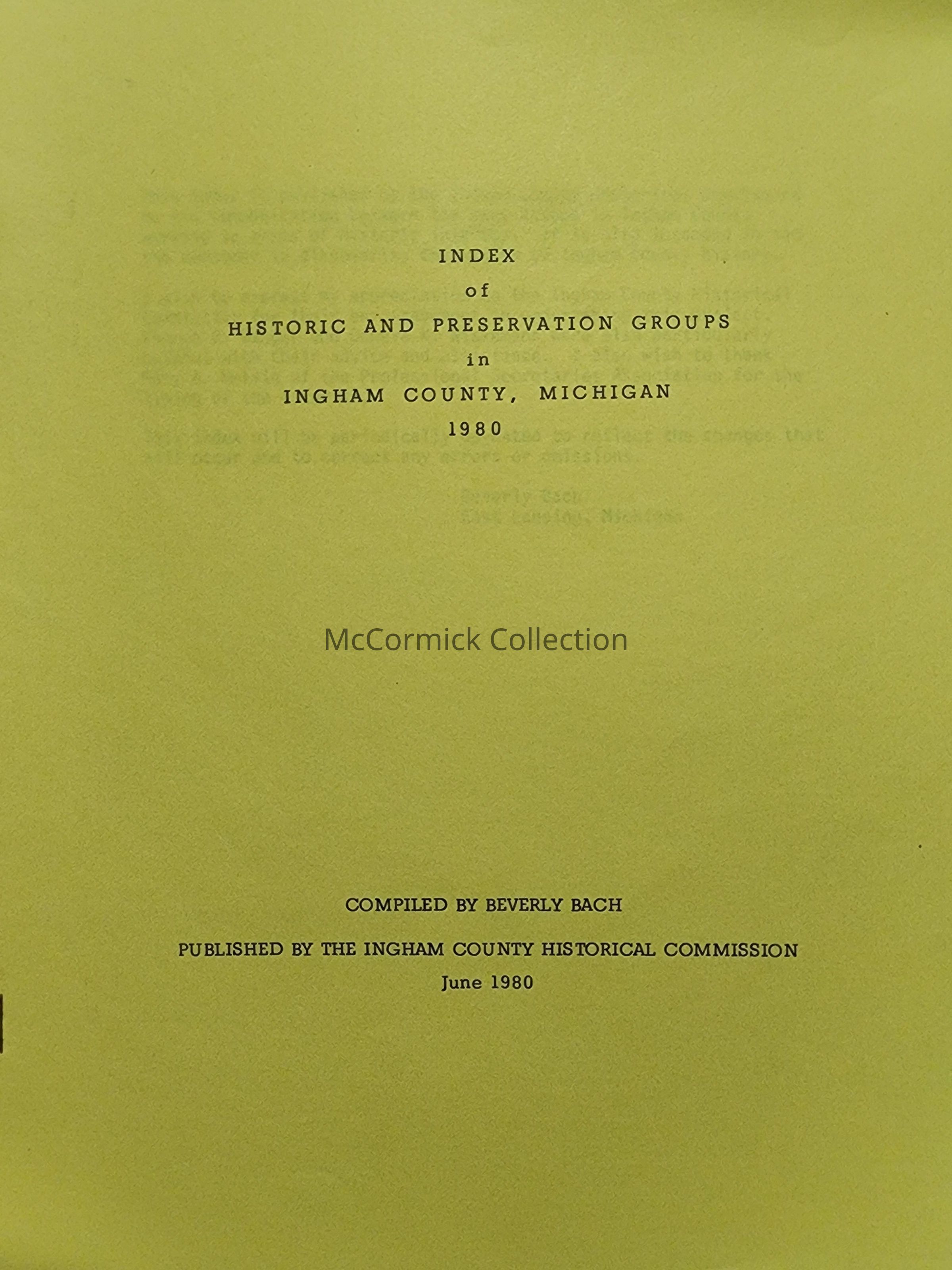 Index of Historic and Preservation Groups in Ingham County, Michigan, 1980