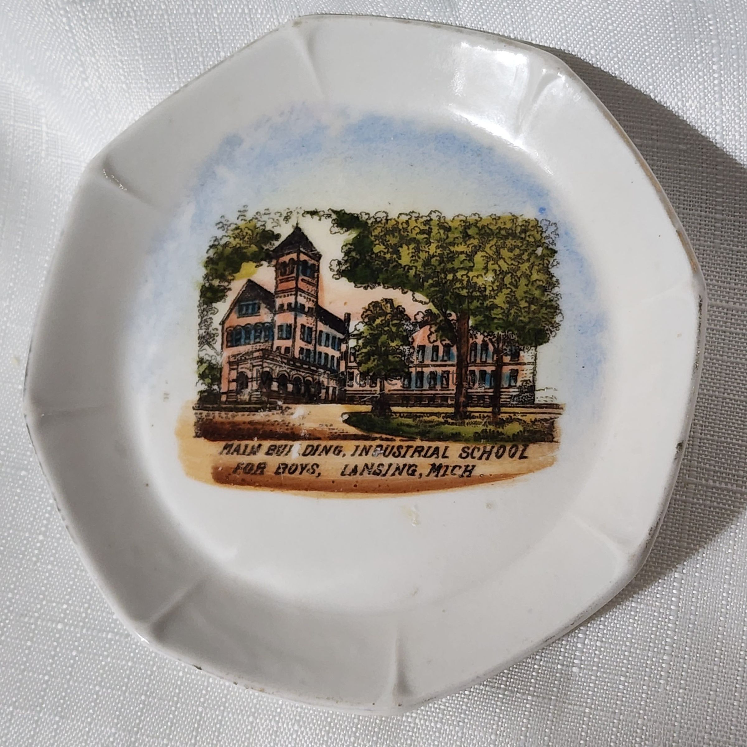 Ceramic Souvenir Dish or tray of the Main building at the Industrial School for Boys in Lansing, Michigan.