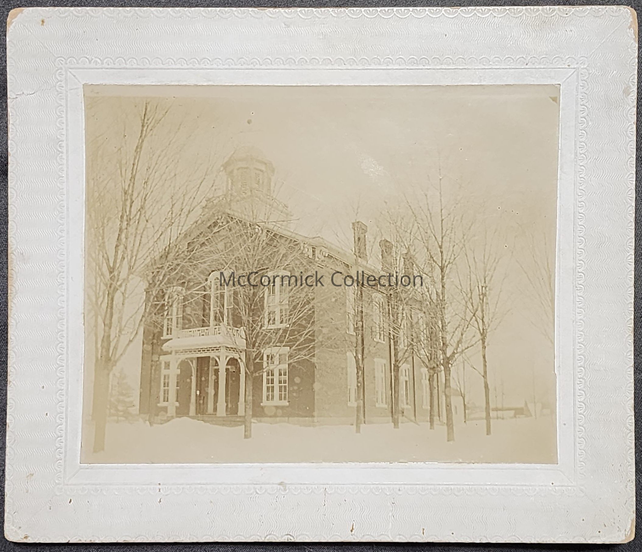Card mounted photograph of the second Ingham County Courthouse in Mason, Michigan. Unpublished view of a scarcely photographed building. Subject: Court, Courthouse, Court House