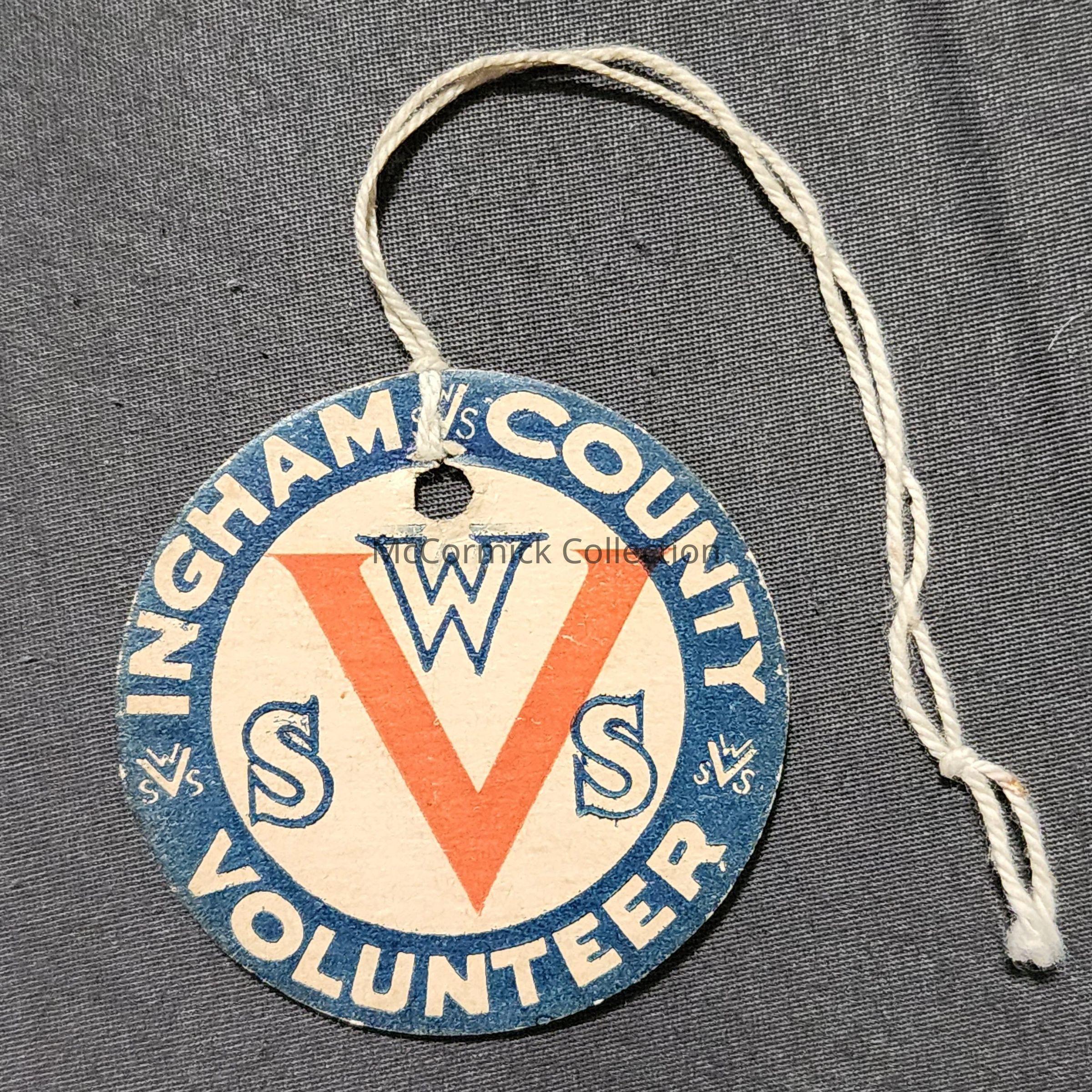 World War II era Victory volunteer paper tag from Ingham County.