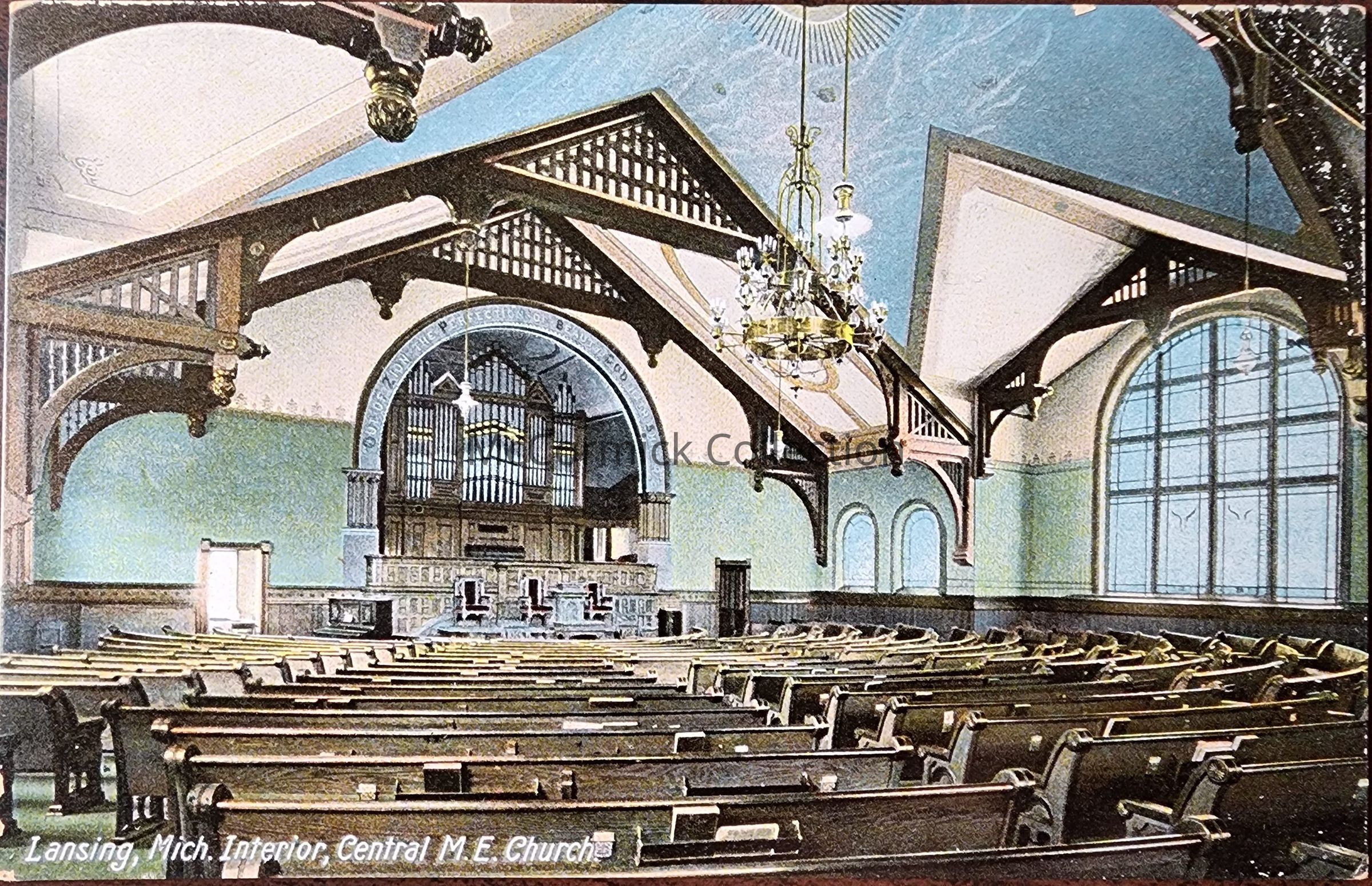 Interior, Central M.E. Church, Lansing, Mich. Postcard